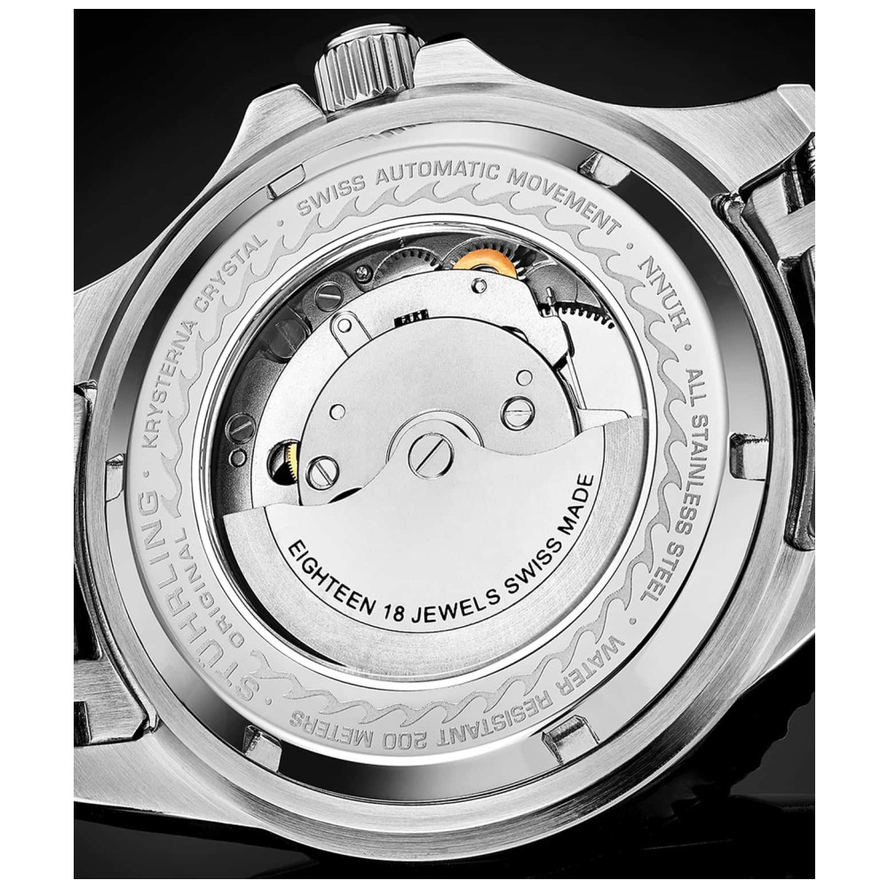Fabricado pela Stuhrling, este relgio construdo para enfrentar os elementos mais rigorosos, graas sua resistncia gua de at 200 metros.
