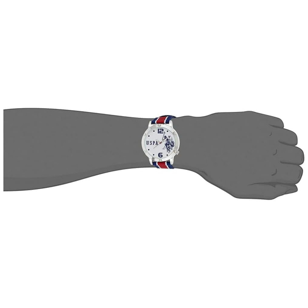Relógio An Maclino Homem Qartzo Analógico Nylon, U.S. POLO ASSN. USC57003, Prateado: Relógio em tons de prata trabalhado com um mostrador branco grande equipado com uma pulseira de relógio de nylon vermelho, branco e azul Pinnacle de relógios de moda para estilo e durabilidade com uma face de vidro clássica Movimento de quartzo analógico Diâmetro da caixa 51mm Não à prova dágua.