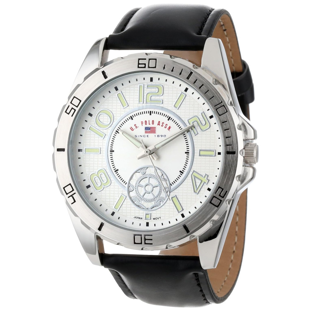 Relógio AnMaclino Homem Pleira de Coro intético Claico, U.S. POLO ASSN. US5159, Preto: Relógio em tom de prata com mostrador redondo com marcador de hora em algarismo arábico luminoso e mostrador de esqueleto falso às 6 horas caixa metálica de 45, com mostrador mineral movimento de quartzo japonês com mostrador pulseira em couro sintético com fecho de fivela Não refistente a água.