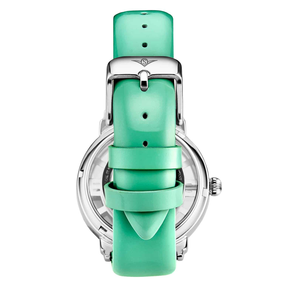 A pulseira de couro verde de 18 mm complementa perfeitamente o design elegante do relógio, tornando o uma escolha ideal para qualquer ocasião, especialmente para combinar com uma roupa profissional.