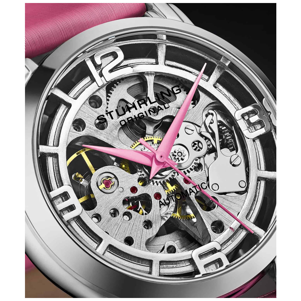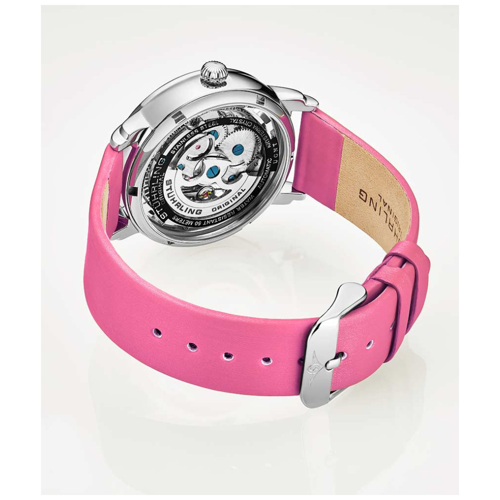 Relógio Automático Winchester 3982 40mm, Mostrador Prateado, Pulseira de Couro Rosa Fivela Tang Prata, Stuhrling: O Relógio Automático Winchester 3982 é um verdadeiro exemplo de elegância e desempenho.