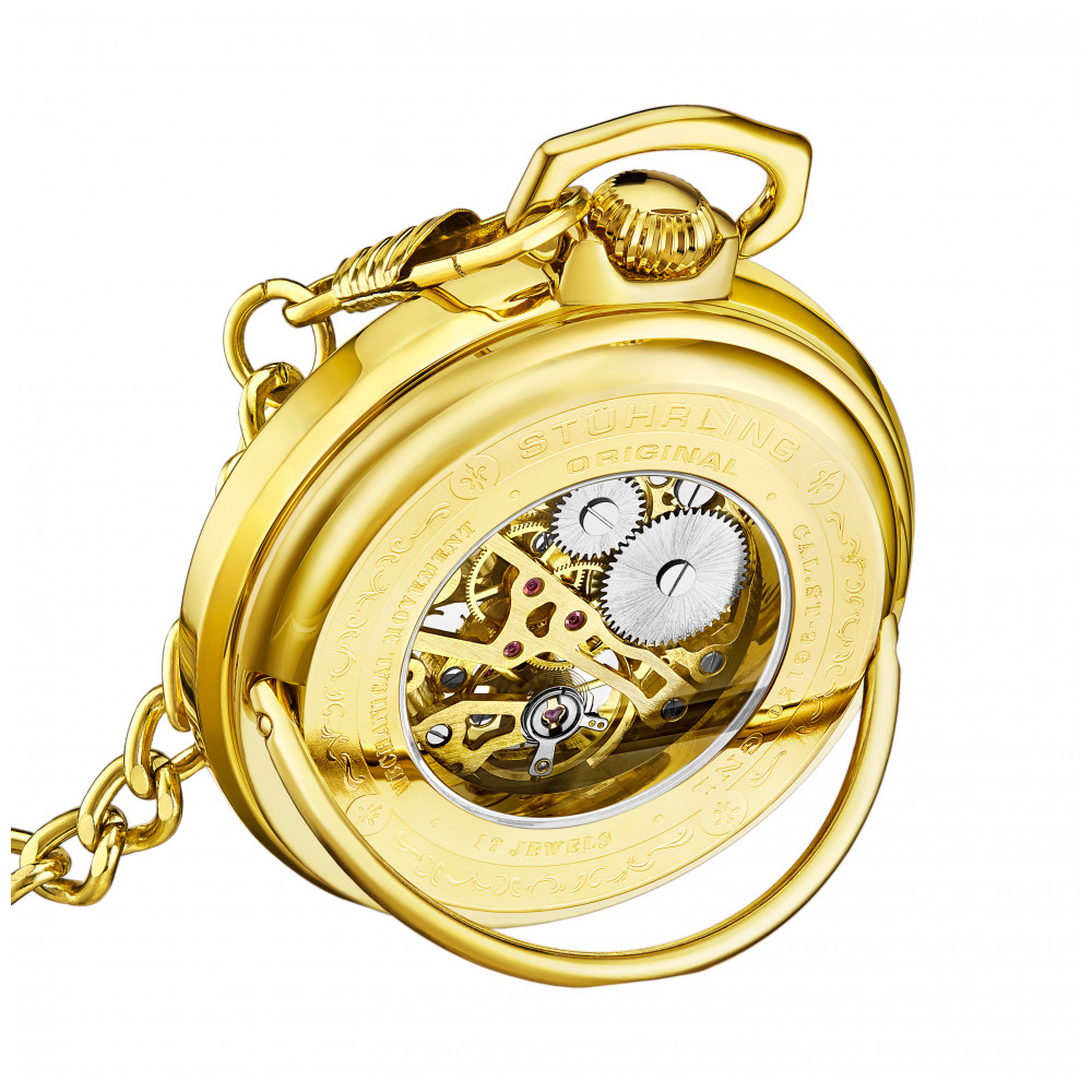 Relógio de Bolso Masculino Stuhrling Jove 986 Quartzo 48mm, Dourado: Salte de alegria com a magia mecânica e a bela face gravada do Jove.