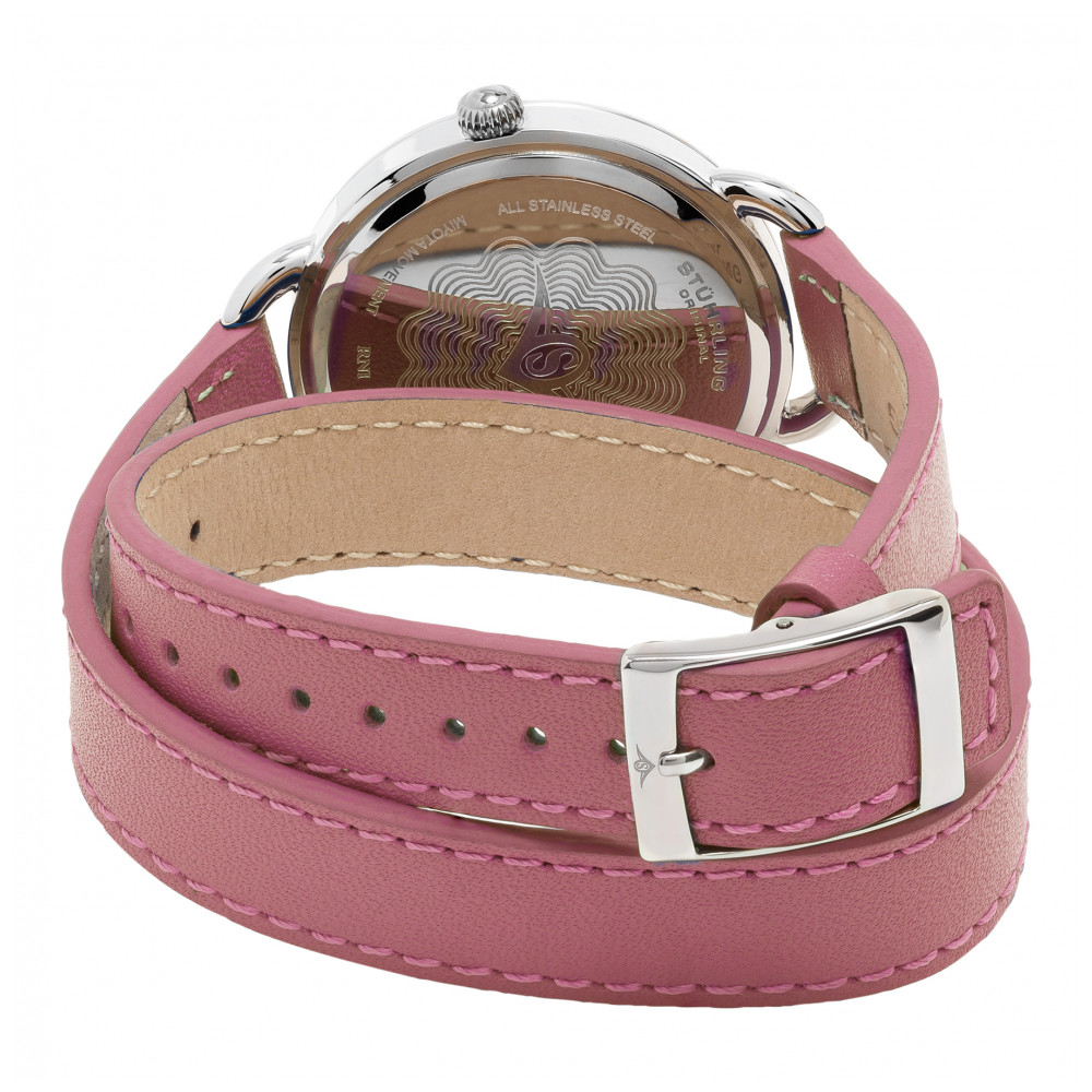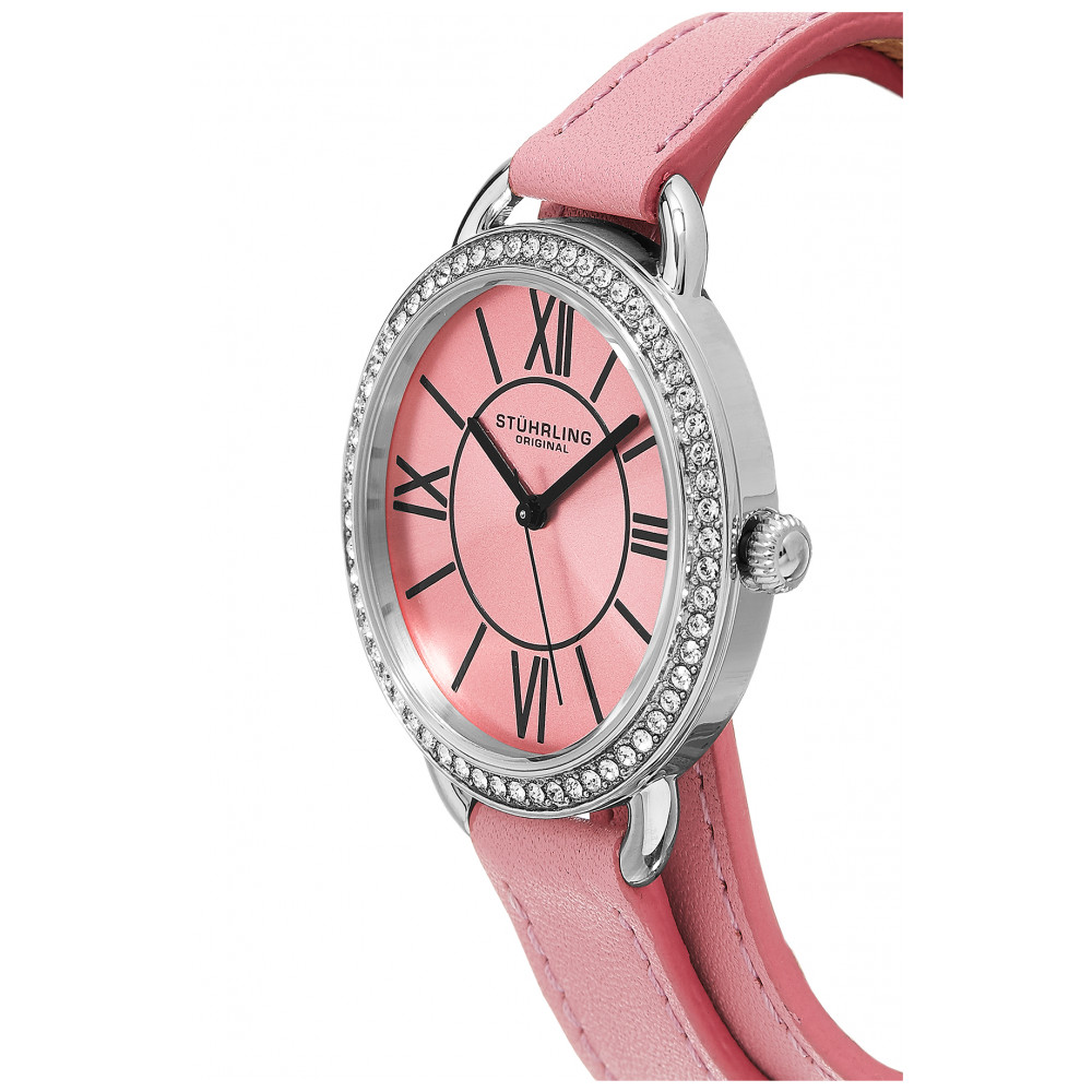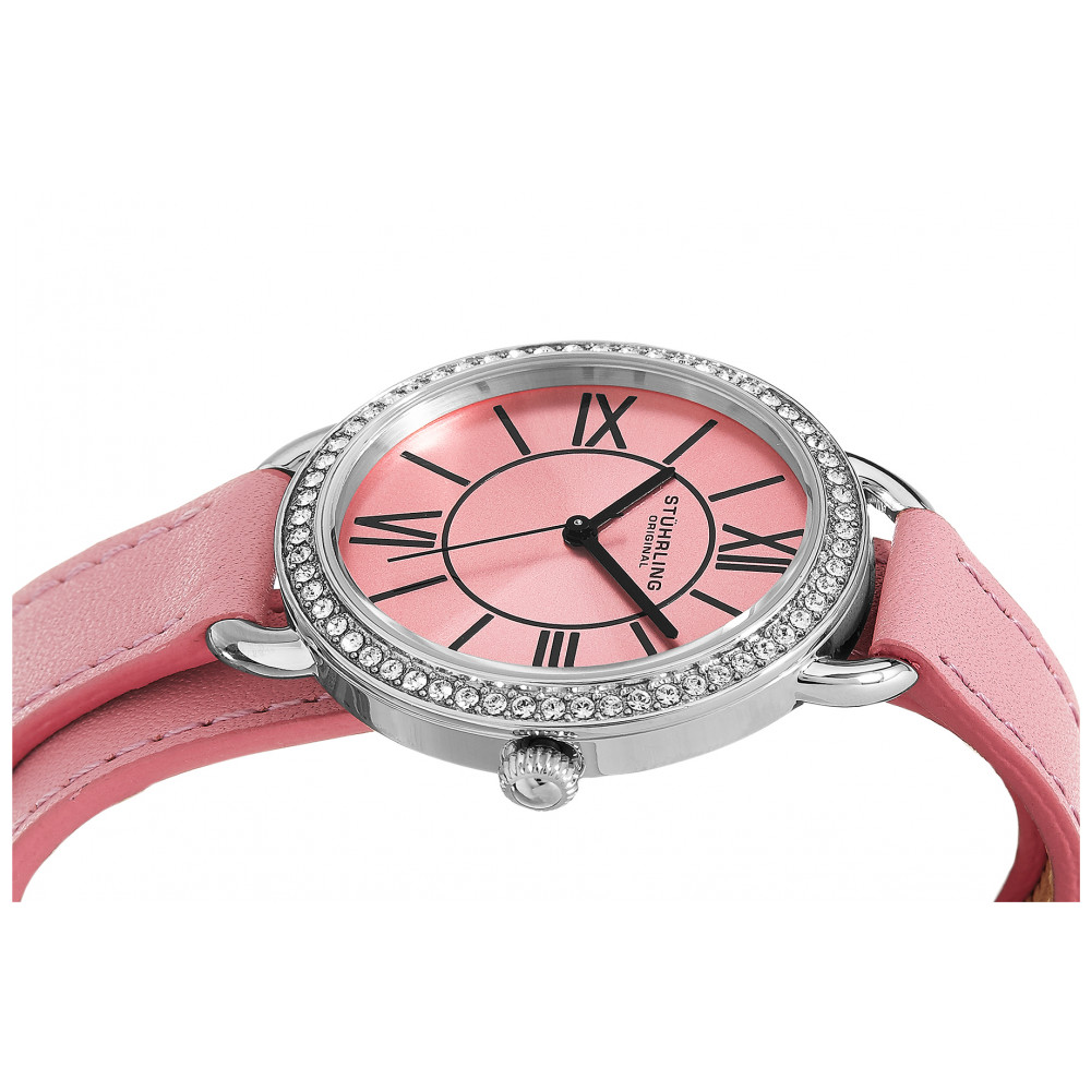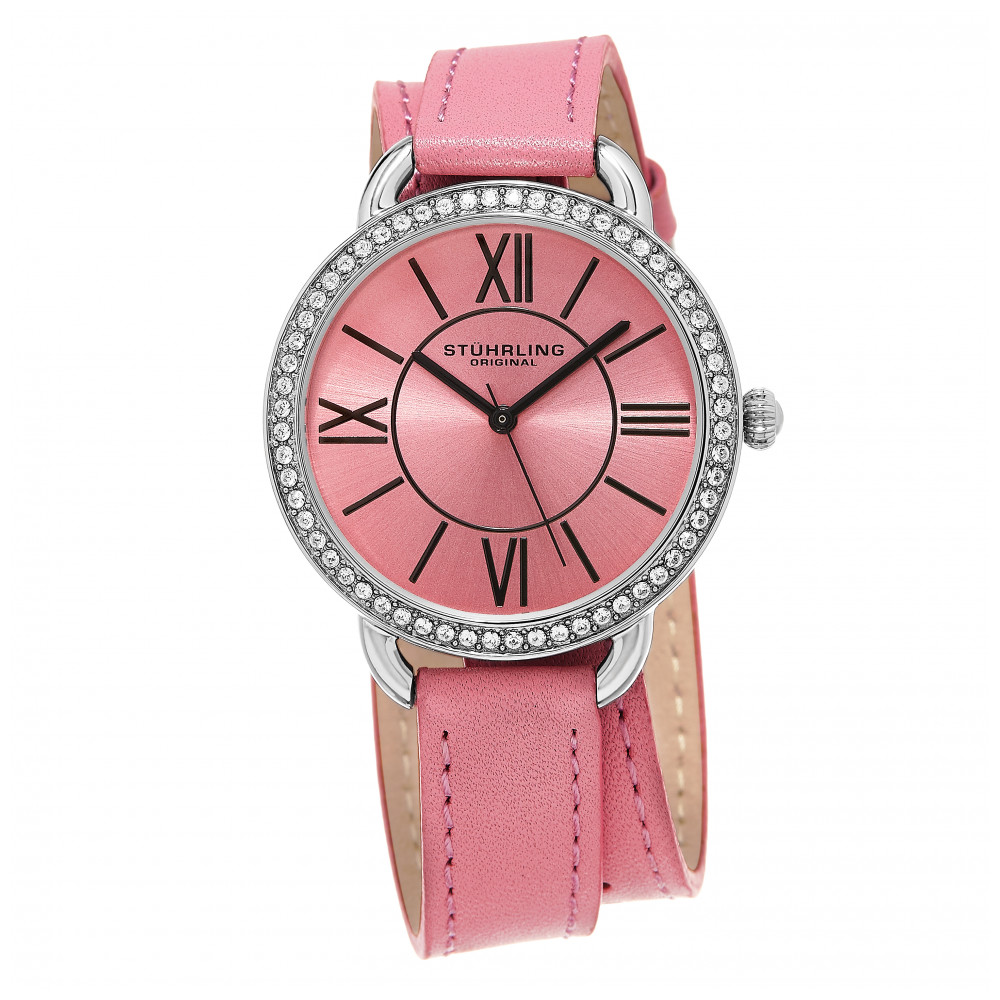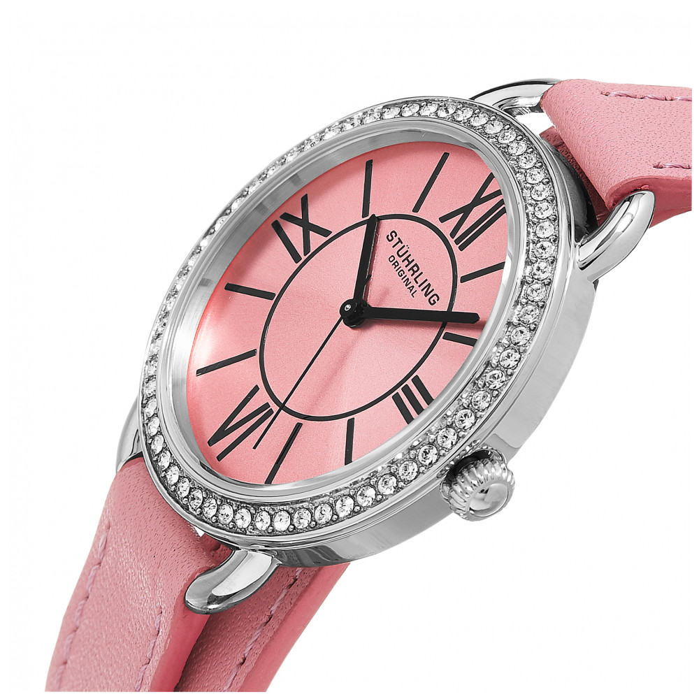 Relógio Feminino Stuhrling 587 Quartzo 37mm, Rosa: Tamanho da Caixa 37mm Resistente à água 5 ATM 50 metros, 165 pés Bezel Cheio de Cristal Polido Alça dupla de couro de largura