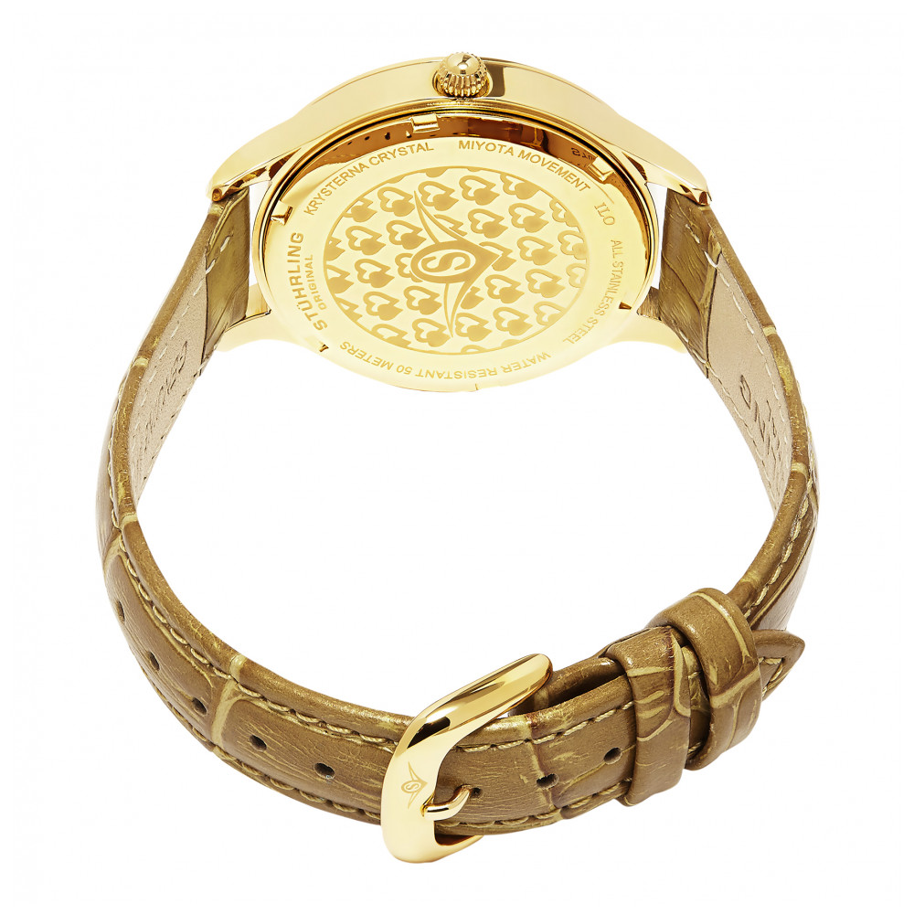 Relógio Feminino Stuhrling Chic 760 Quartzo 36mm, Marrom e Dourado: Tamanho da Caixa 36mm Resistente à água 5 ATM 50 metros, 165 pés Moldura cheia de cristal de aço inoxidável Pulseira de couro com relevo de crocodilo de largura