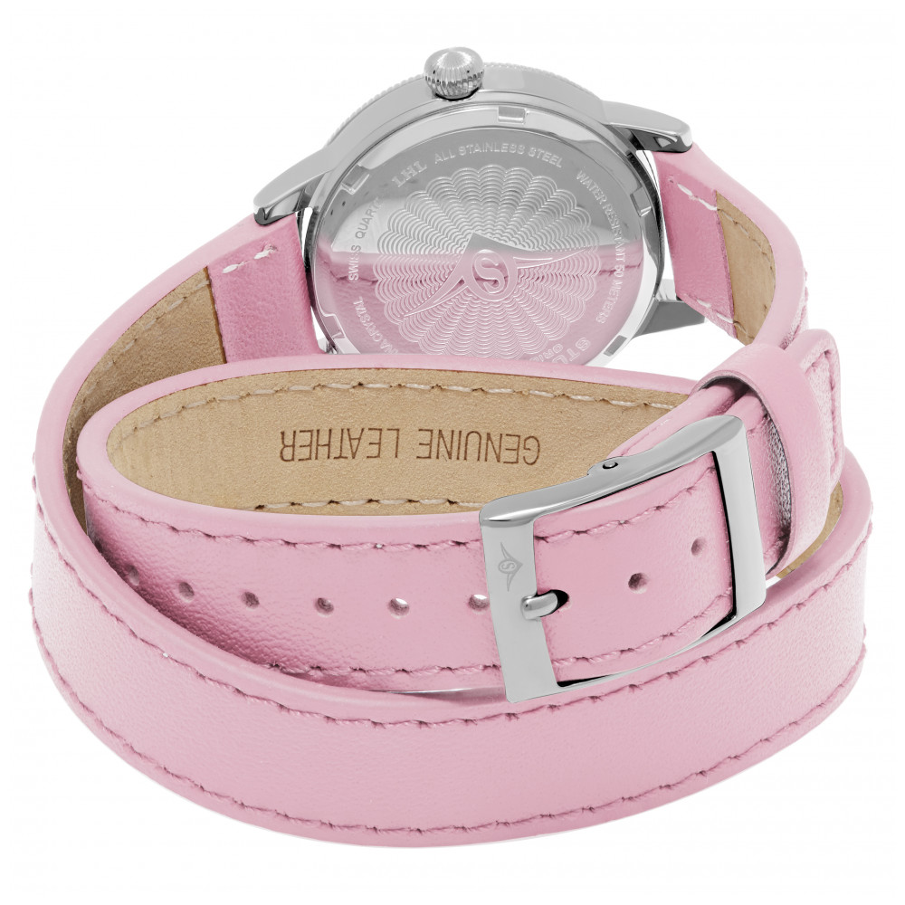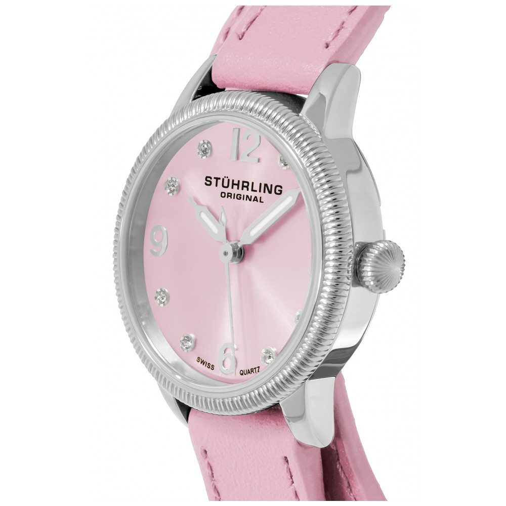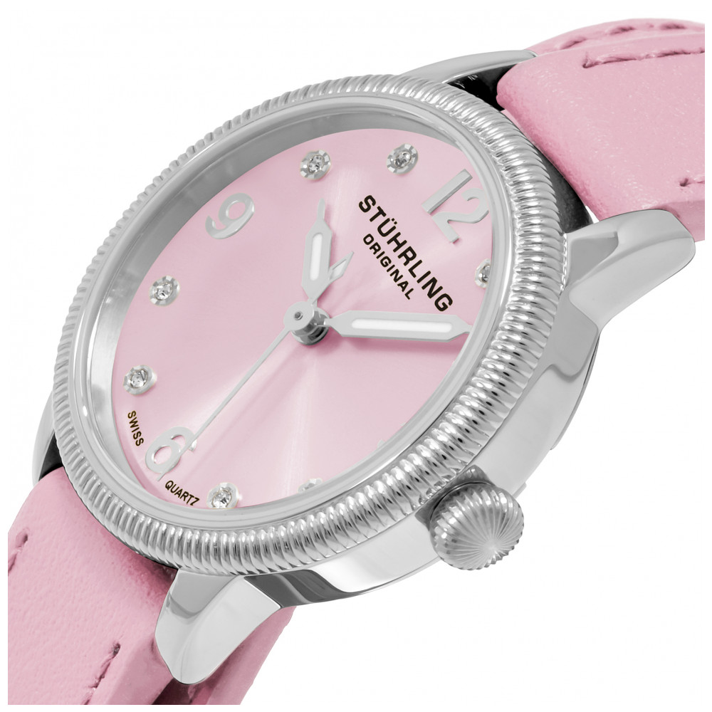 Relógio Feminino Stuhrling Vogue 646 Quartzo 31mm, Rosa: Tamanho da Caixa 31mm Resistente à água 5 ATM 50 metros, 165 pés Moldura de aço inoxidável serrilhada Pulseira de couro com acabamento fosco de largura