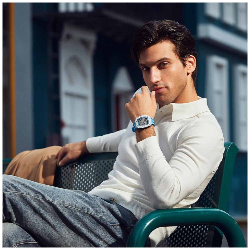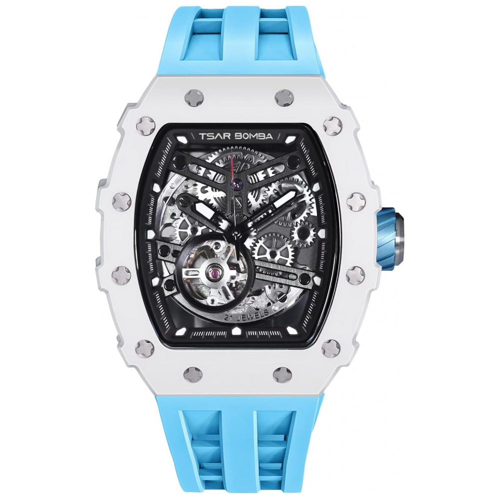 Relógio Masculino Analógico Automático Mecânico a Prova dÁgua 50M com Pulseira de Silicone, TSAR BOMBA SGLZ TB 8208, Azul: Modelo de cerâmica uma interpretação diferente de TSAR BOMBA Superfície de revestimento de cerâmica inovadora para serviços pesados, parafusos e ranhuras padronizados são chanfrados e retificados, a ponta é arredondada e polida, tratamento de superfície microjateado, tratamento de superfície fosca, tratamento de chanfro fosco engenhoso .