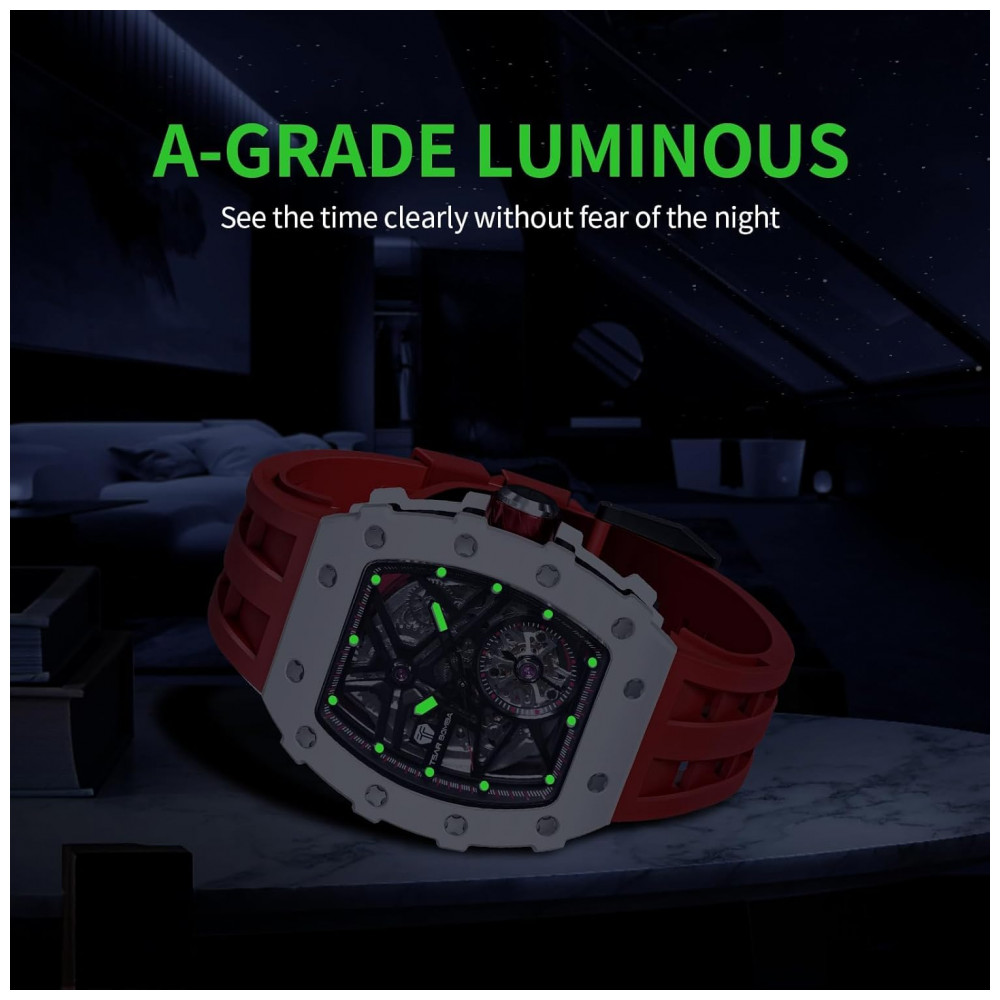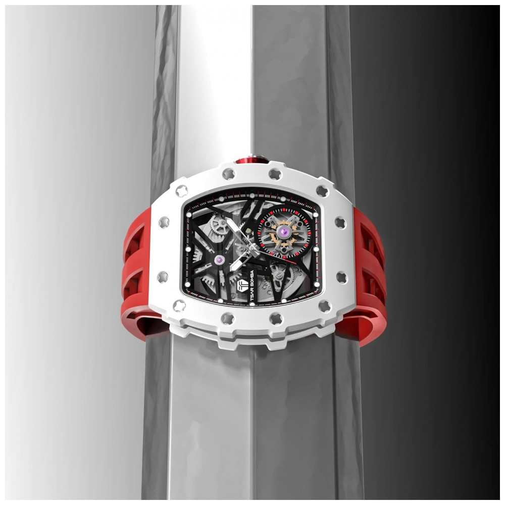 Relógio Masculino Analógico Automático Mecânico a Prova dÁgua 50M com Pulseira de Silicone, TSAR BOMBA SGLZTB8209 TC, Vermelho e Branco