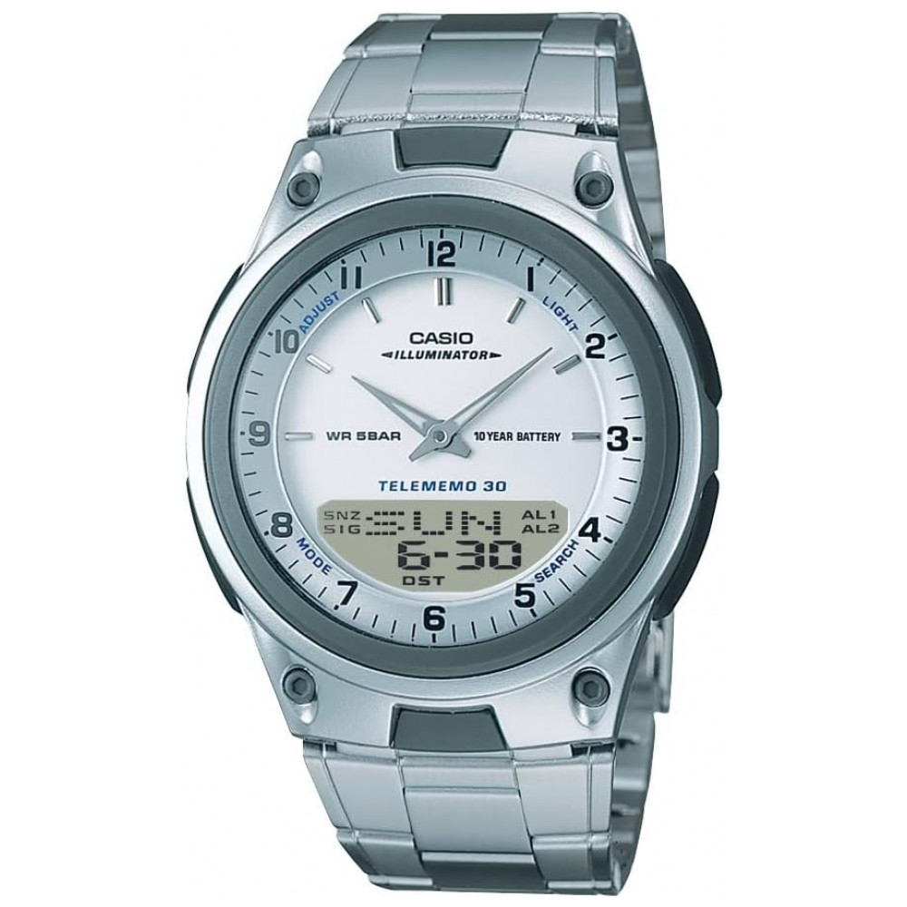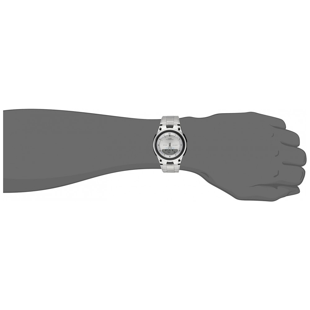 Relógio Masculino Mens 7A Cronógrafo Esportivo, CASIO AW80D 7AV, Prateado: Relógio prateado com detalhes em resina preta, caixa iluminada e funcionalidade de cronógrafo Caixa de aço inoxidável de com janela de mostrador mineral Movimento de quartzo com display analógico digital Faixa de aço inoxidável com fecho dobrável Resistente à água até 50 m 165 pés em geral, adequado para curtos períodos de natação recreativa, mas não para mergulho ou snorkel.