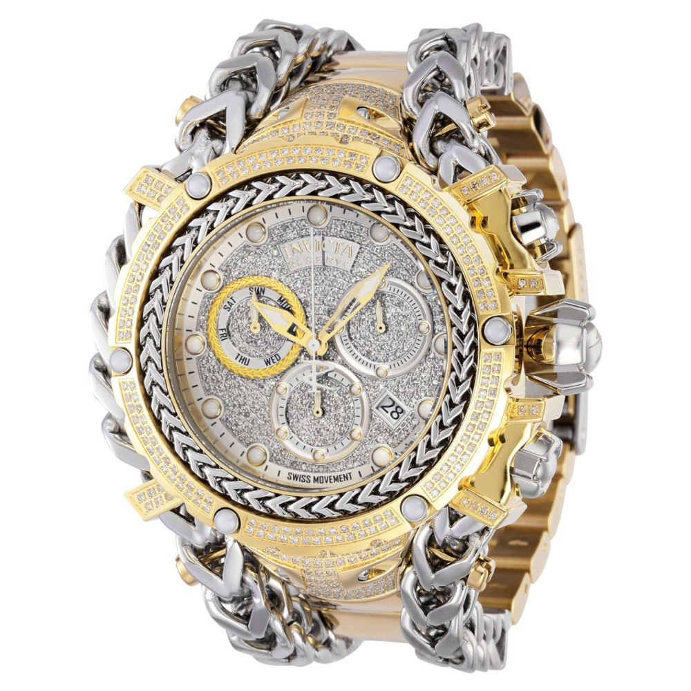Relógio Masculino Reserve Gladiator 2,92 quilates com Diamante, Invicta 35059, Dourado e Prata: Este atraente relógio Invicta da coleção Reserve Gladiator é movido por um movimento de quartzo preciso, com 2,92 quilates de diamantes s e uma caixa de aço em ouro maciço.