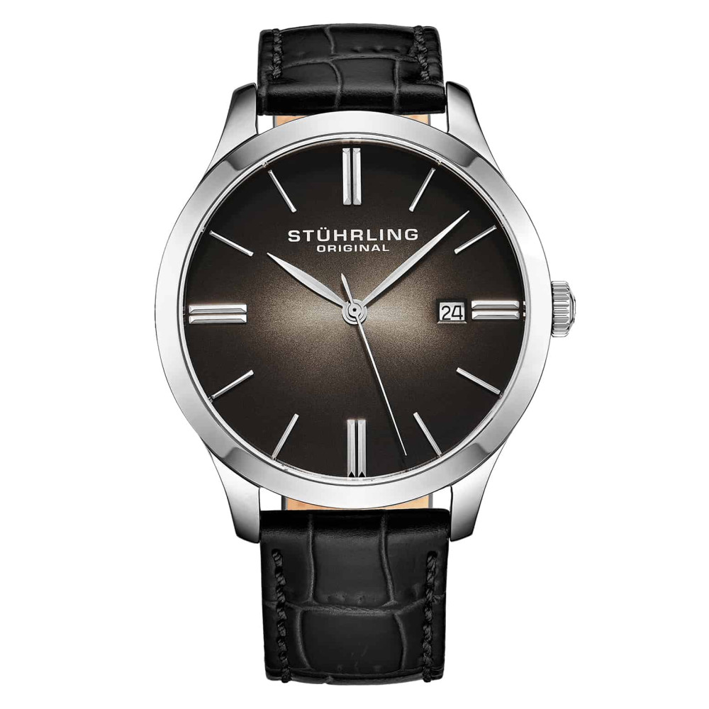 Relógio Masculino Stuhrling 4014.1 Quartzo 42mm, Preto: Mantenha seu pulso elegante com o mostrador sunburst do Cuvette II.