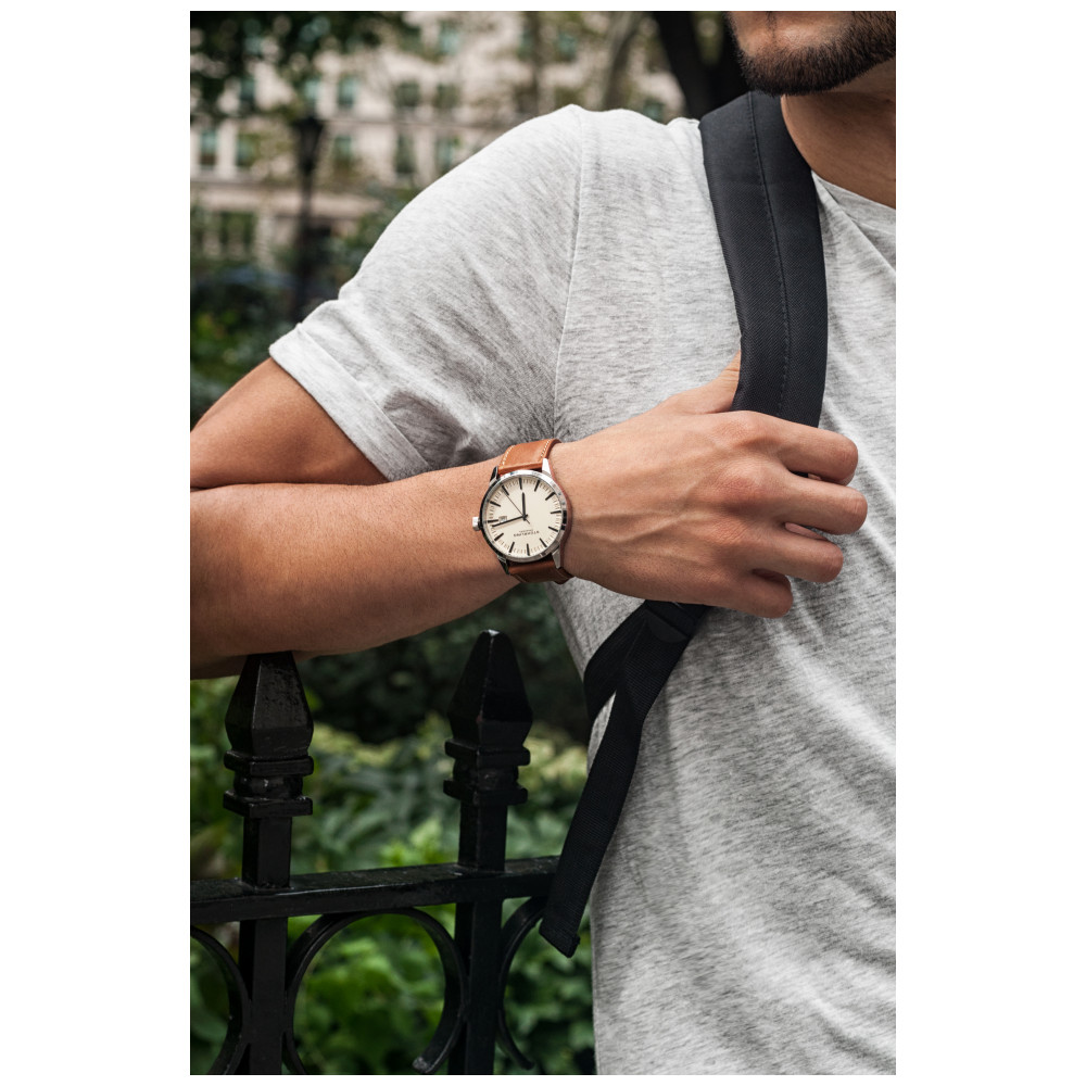 Relógio Masculino Stuhrling Ascot 555 Quartzo 42mm, Marrom Clássico: Tamanho da Caixa 42mm Resistente à água 5 ATM 50 metros, 165 pés moldura polida Pulseira de couro com relevo de crocodilo de largura