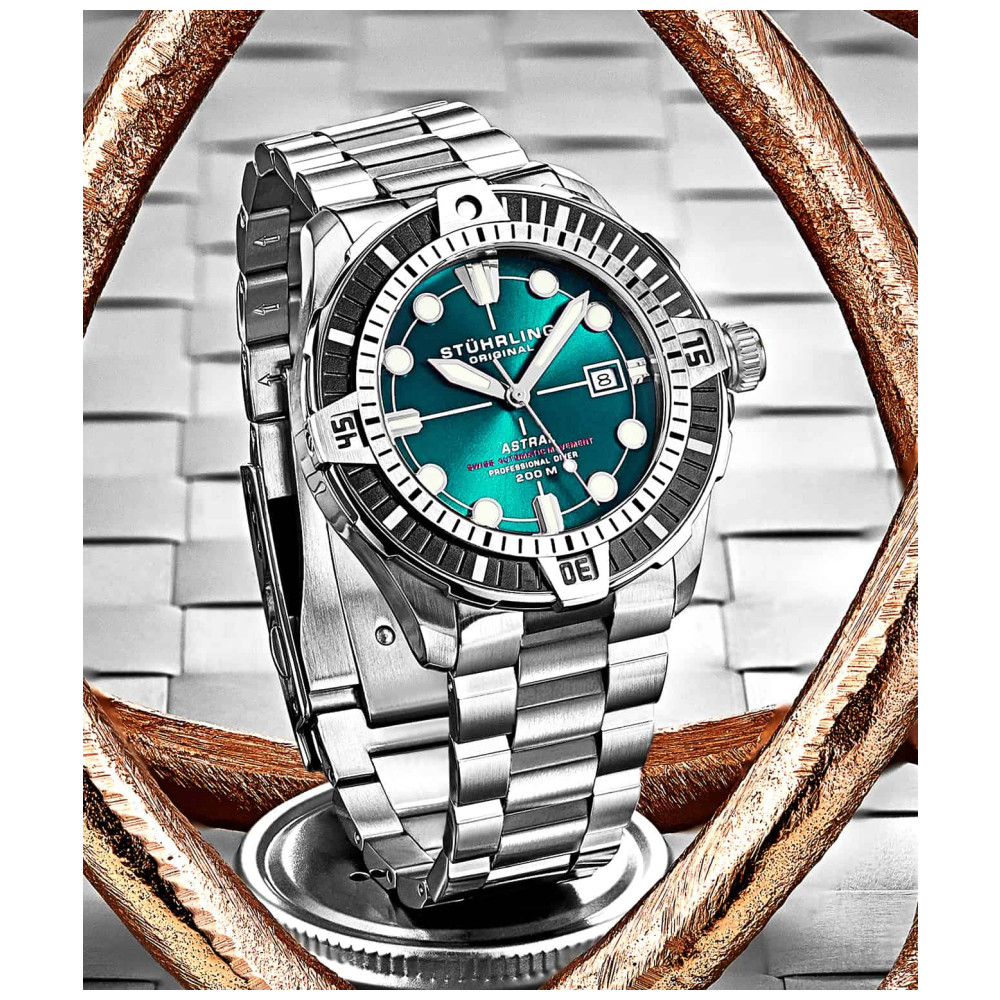 Relógio Masculino Stuhrling Astral 1005 Automático 45mm, Prata: Com um perfil elegante e características clássicas do Swiss Automatic Astral com um rico mostrador que se destaca, o Astral 44mm é uma peça atemporal que faz uma declaração suficiente.