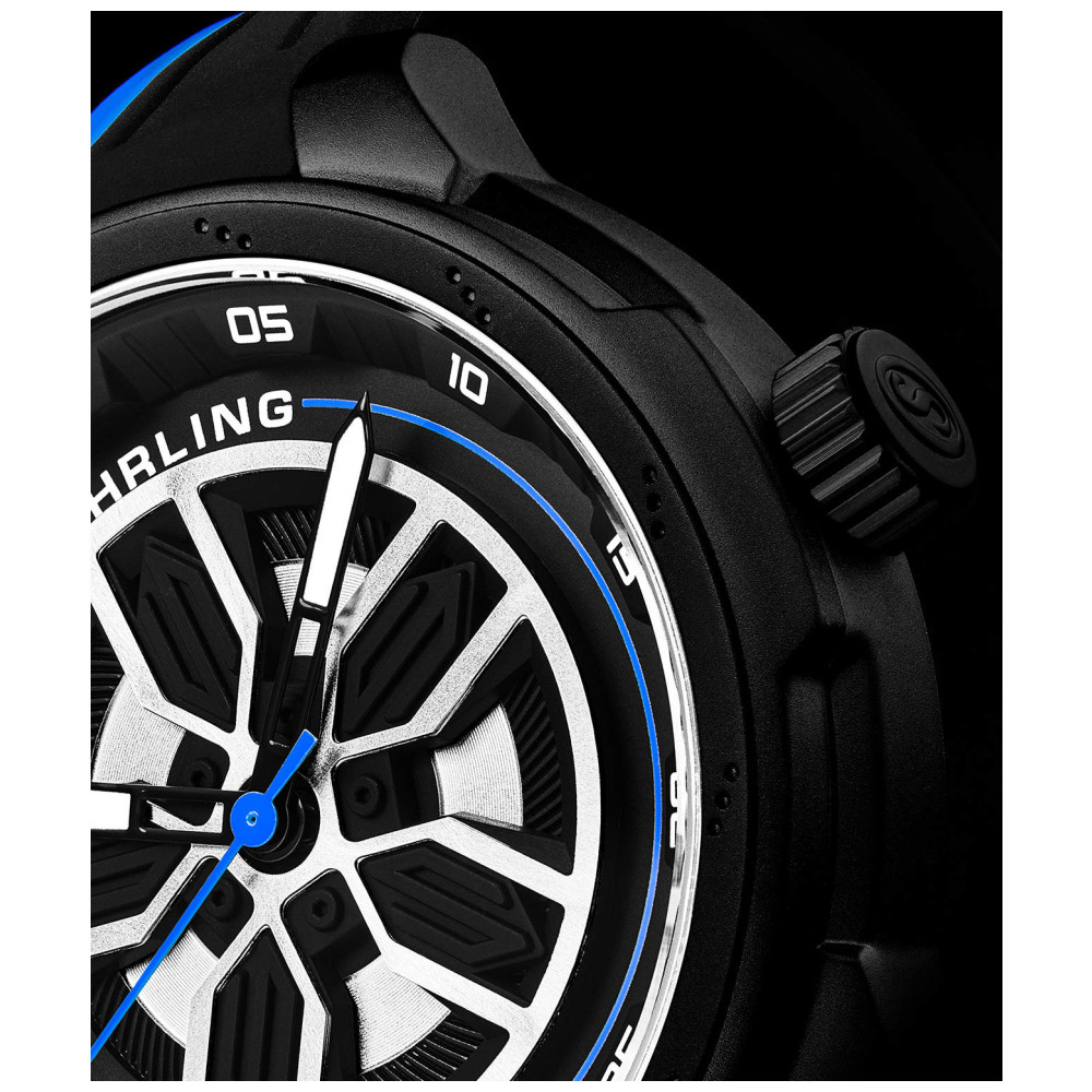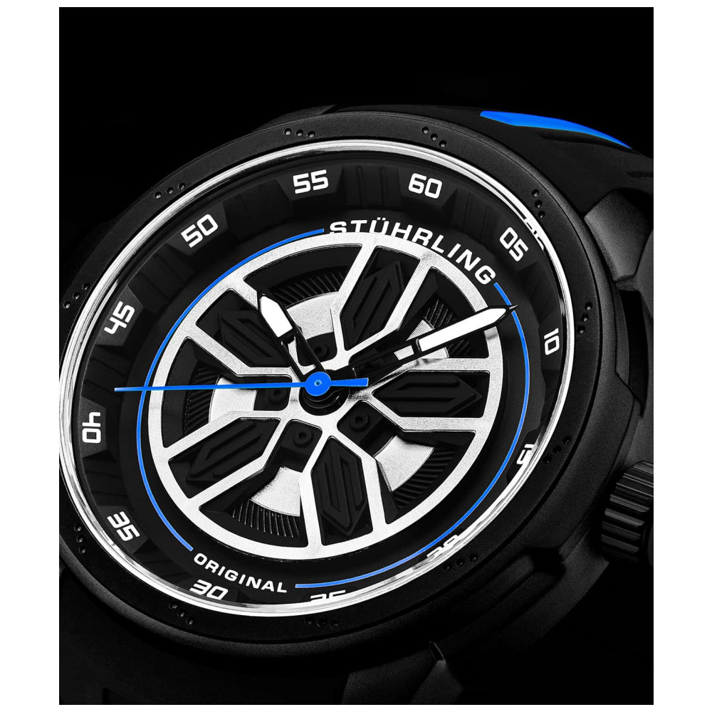 Relógio Masculino Stuhrling Aviador 984 Quartzo 44mm, Preto: Tamanho da caixa 44mm 3 Resistente à água ATM 30 metros , 100 pés Moldura decorada com rotor de freio fixo Correia de borracha com faixa de cor larga