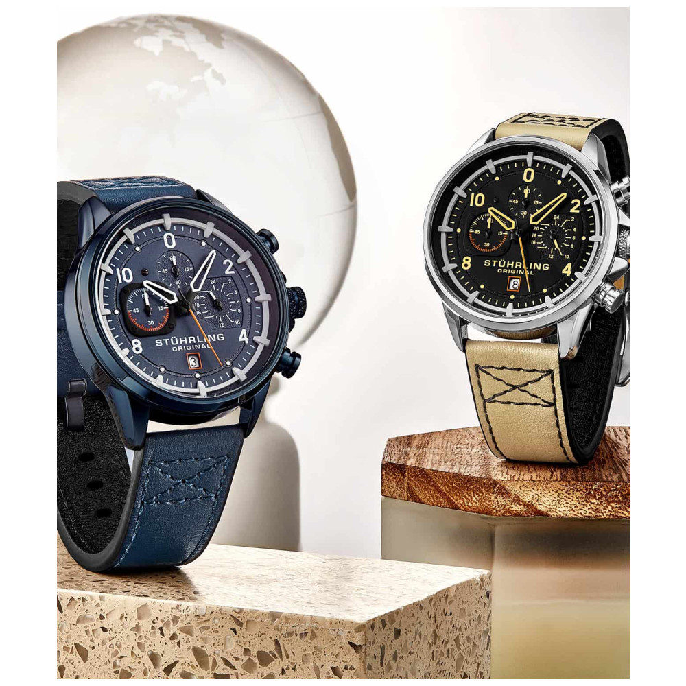 Relógio Masculino Stuhrling Aviator 929.03 Quartzo 45mm, Azul: Abrace o estilo atemporal do Aviador Volda.