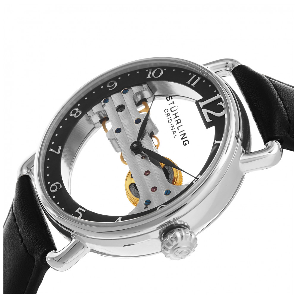 Relógio Masculino Stuhrling Bridge 976 Manual 42mm, Preto: Tamanho da Caixa 42mm Resistente à água 5 ATM 50 metros, 165 pés Moldura arredondada polida Pulseira de couro de largura