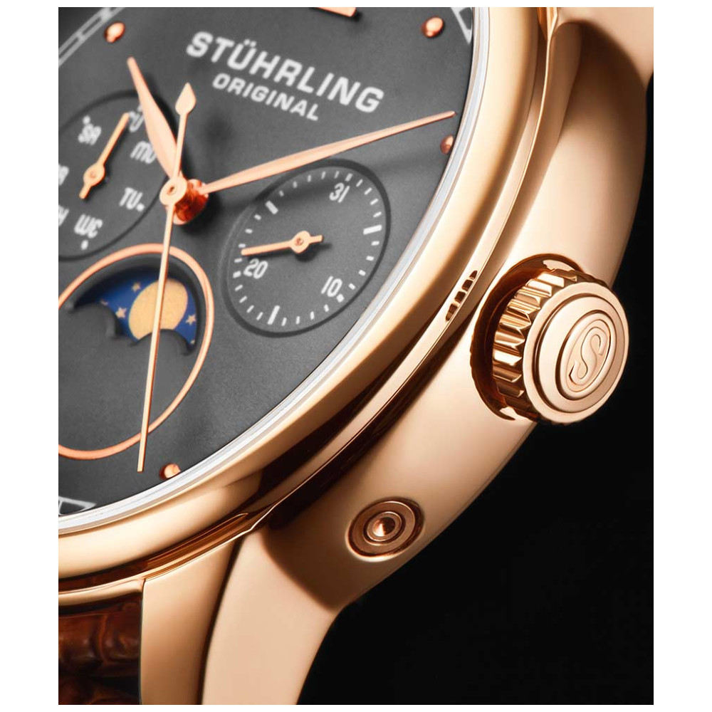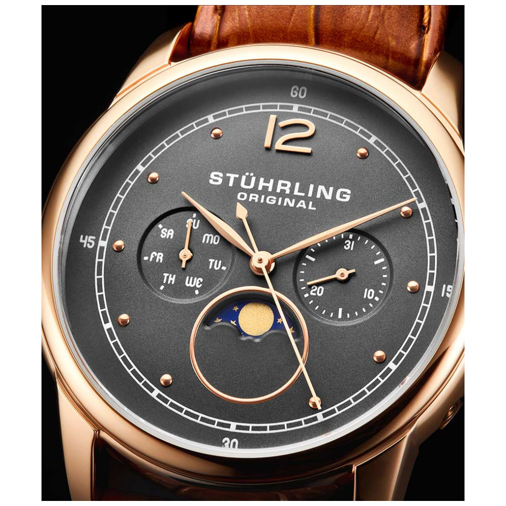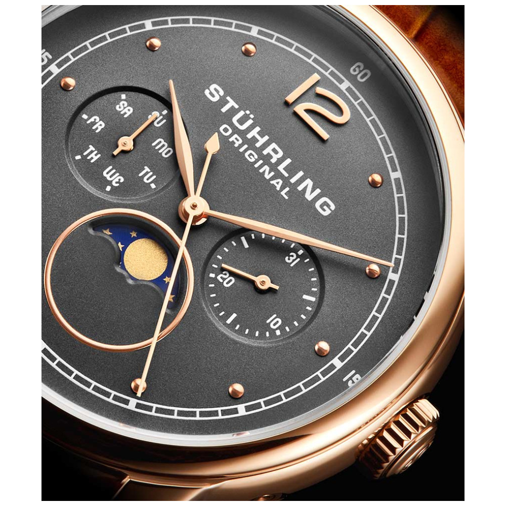 Relógio Masculino Stuhrling Celestia 898 Quartzo 39mm, Marrom Clássico: Transcenda todos os dias com o Celestia, cujo mostrador animado da Fase da Lua move o céu e a terra para manter seu pulso em grande estilo.