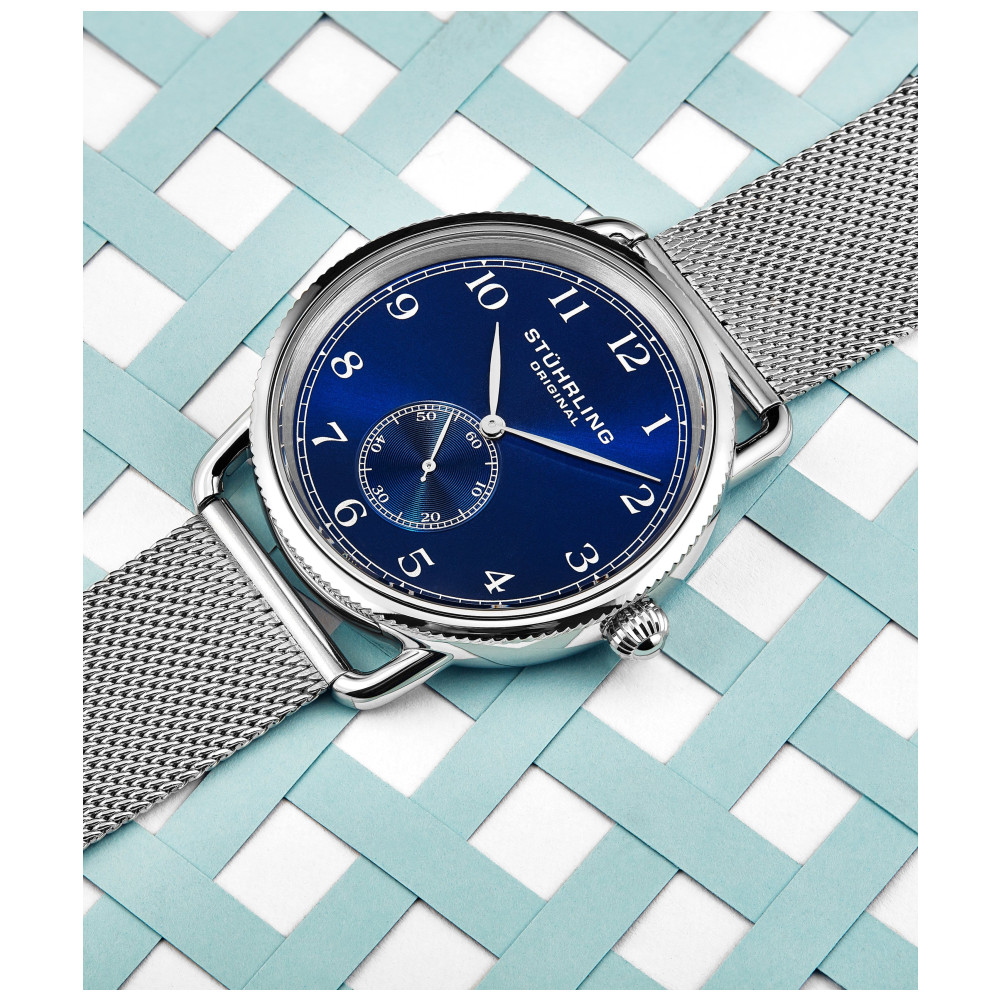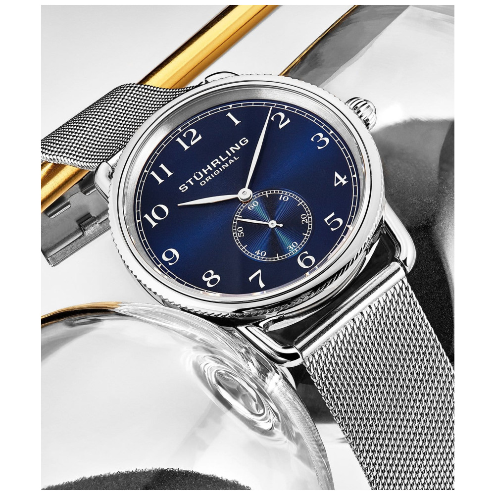 Relógio Masculino Stuhrling Classique 207M Quartzo 40mm, Prata: Tamanho da Caixa 40mm Resistente à água 5 ATM 50 metros, 165 pés Moldura chanfrada de aço inoxidável polido Banda de malha de aço inoxidável de largura