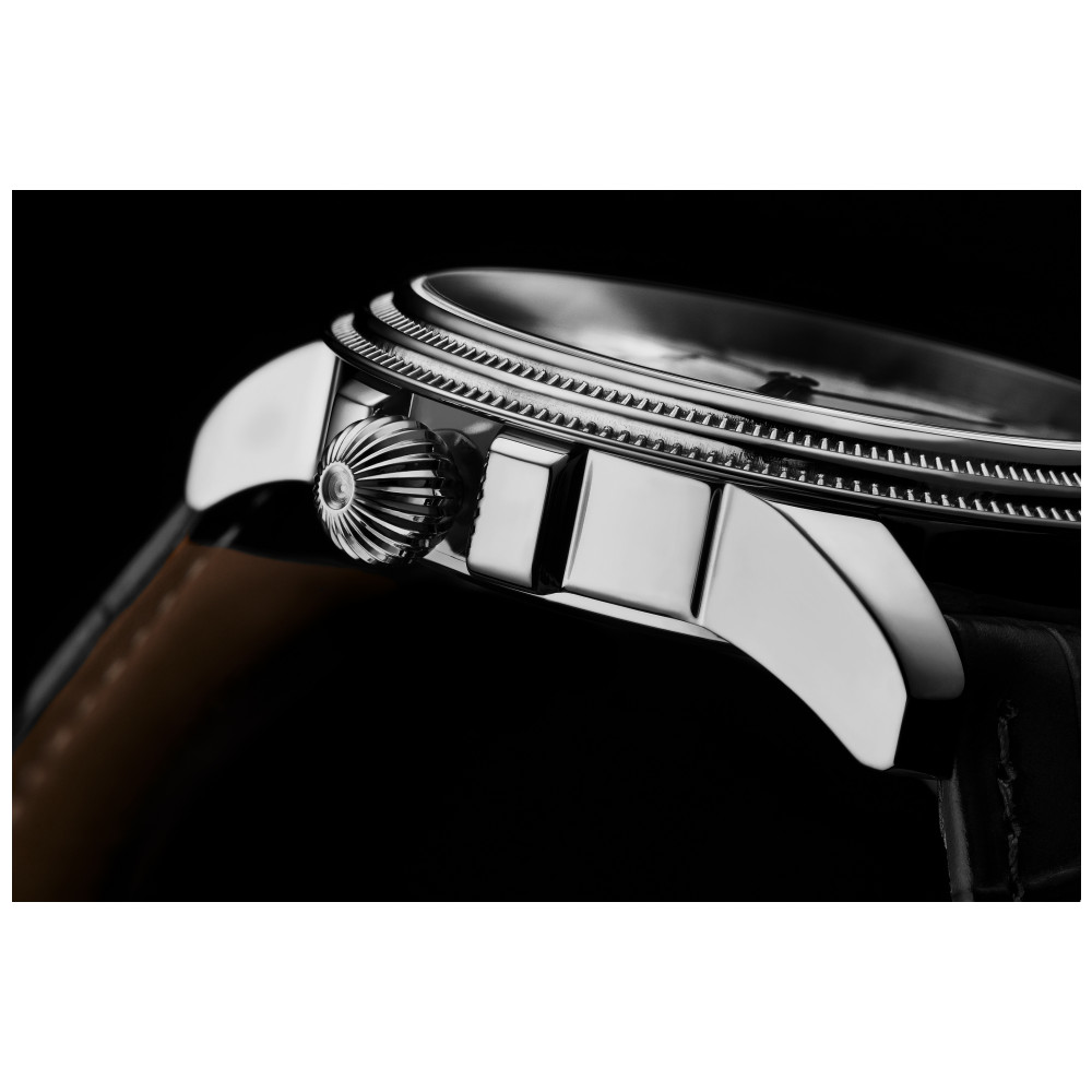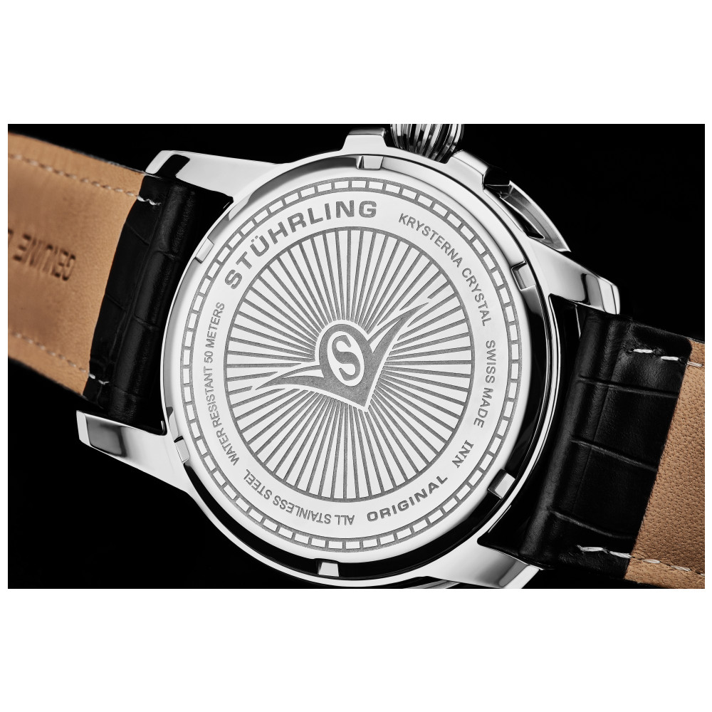 Relógio Masculino Stuhrling Classique 788 Quartzo 45mm, Preto: Tamanho da Caixa 45mm Resistente à água 5 ATM 50 metros, 165 pés Moldura serrilhada de aço inoxidável Pulseira de couro com relevo de crocodilo de largura