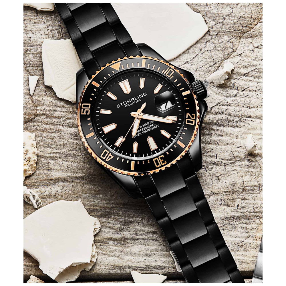 Relógio Masculino Stuhrling Depthmaster 3950A Quartzo 42mm, Preto