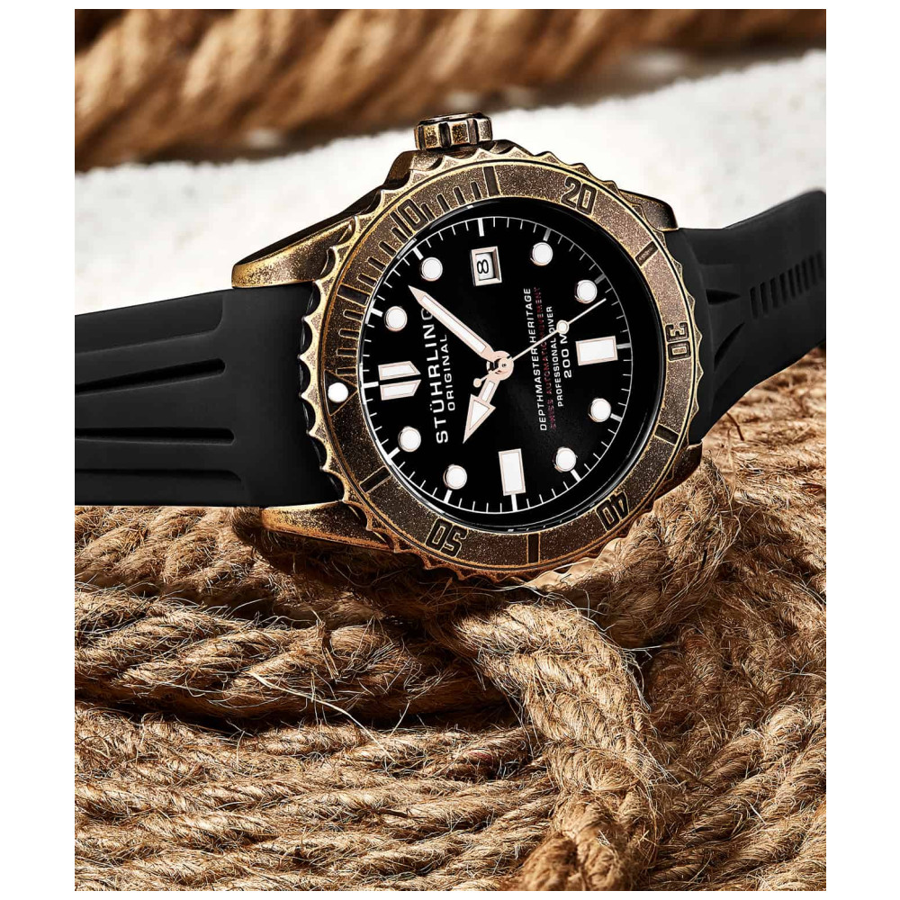 Relógio Masculino Stuhrling Depthmaster Heritage Automático 44mm, Preto: Embarque em uma nova jornada com o Heritage Diver.