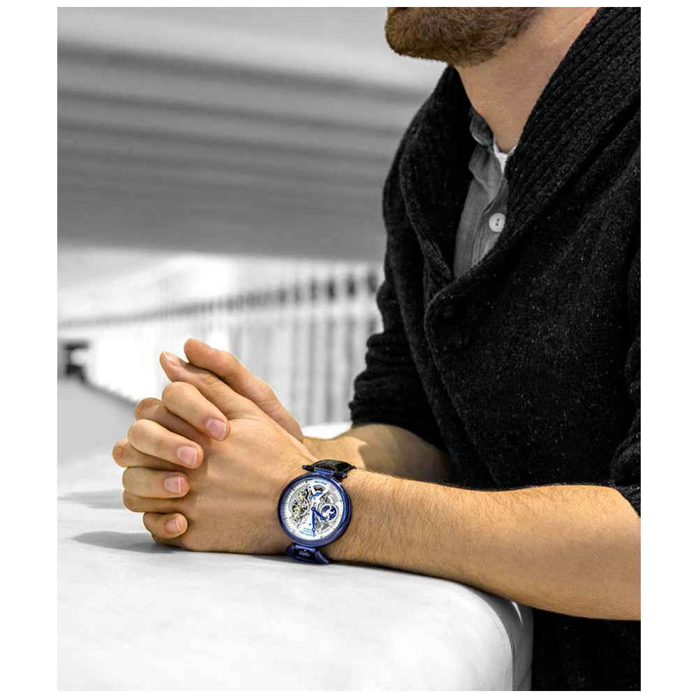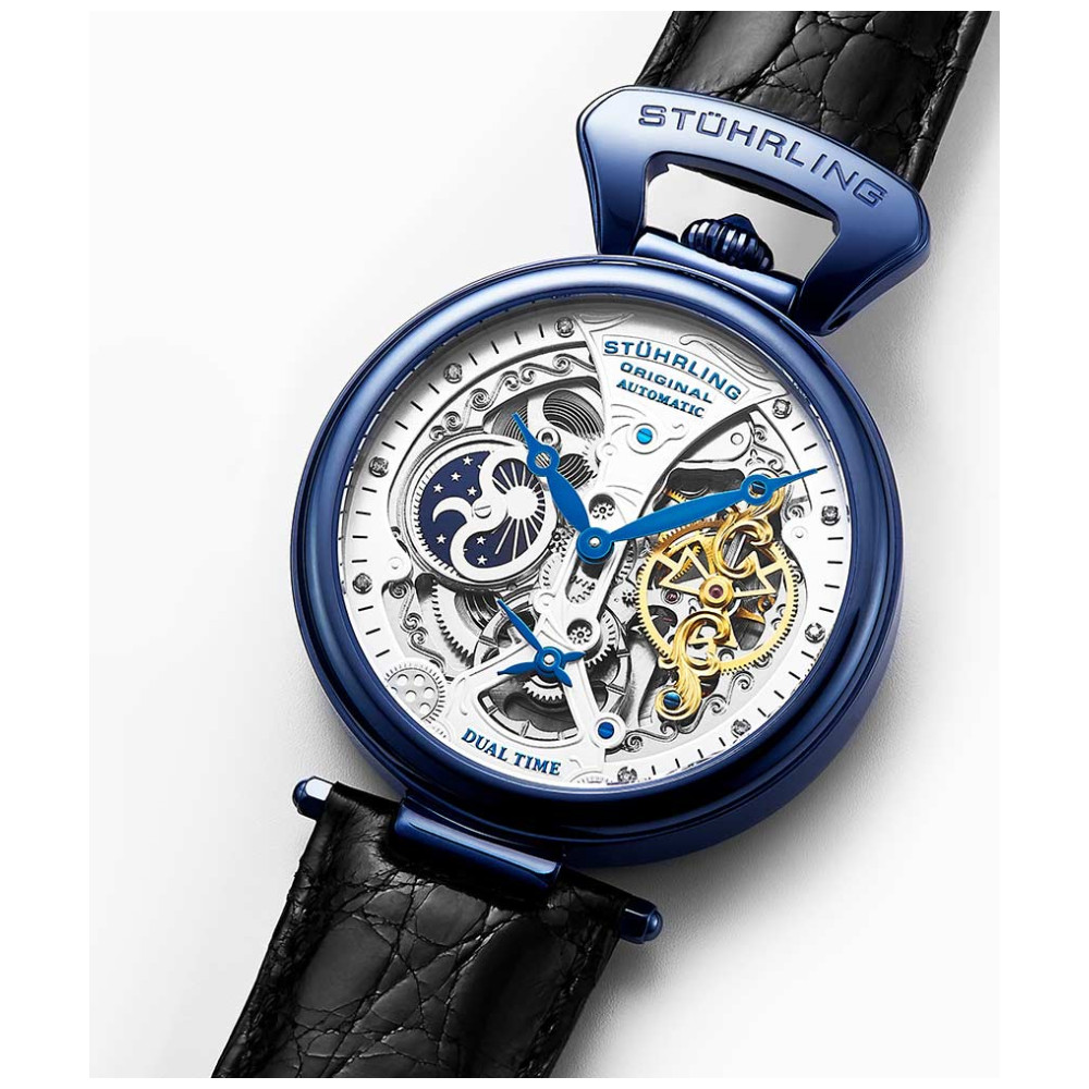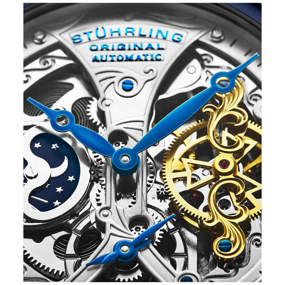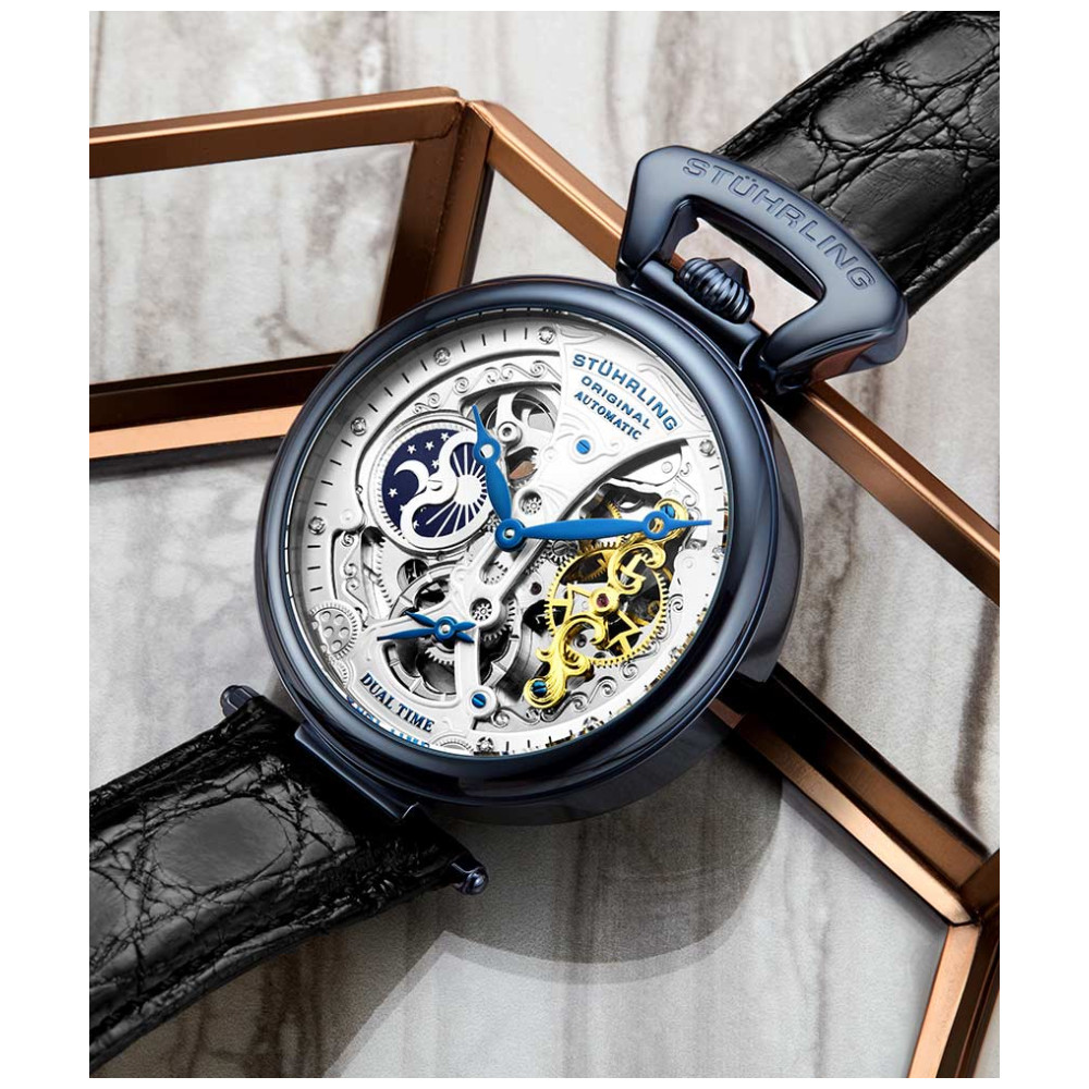Relógio Masculino Stuhrling Emperors Grandeur 127A Automático 49mm, Azul: Alcance o equilíbrio perfeito entre impressionante e imponente com o Grandeur 127A do Imperador de dupla hora automática.