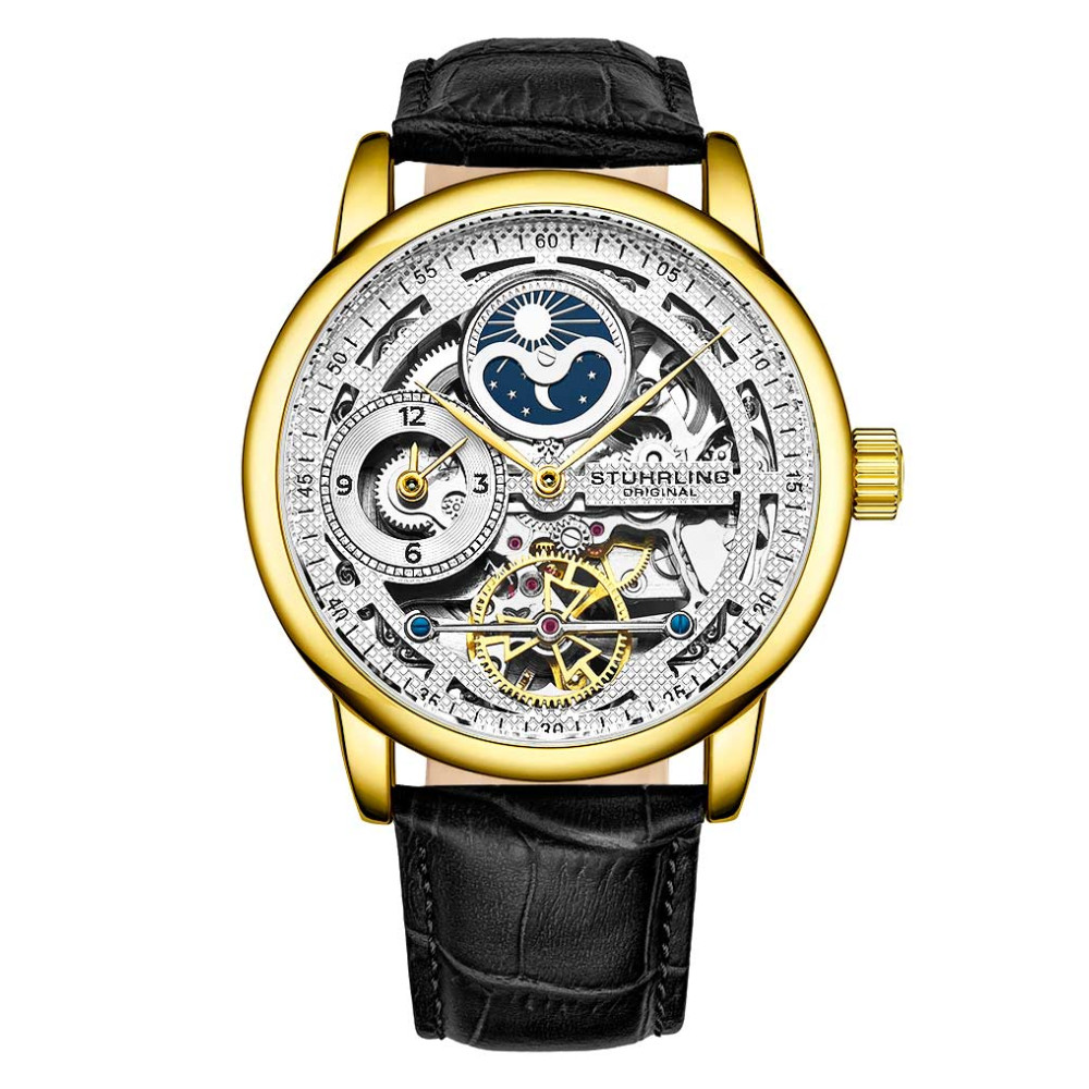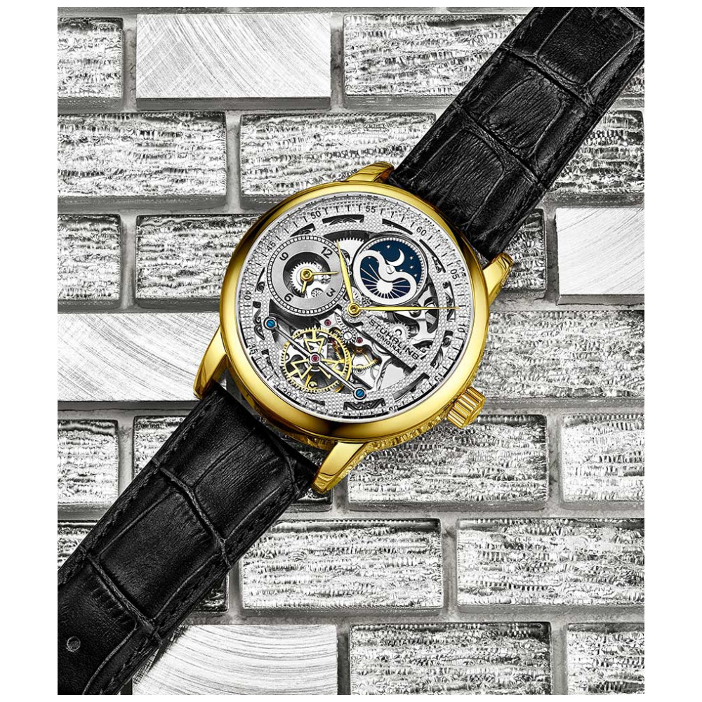 Relógio Masculino Stuhrling Esqueleto 3917 Automático 43mm, Dourado