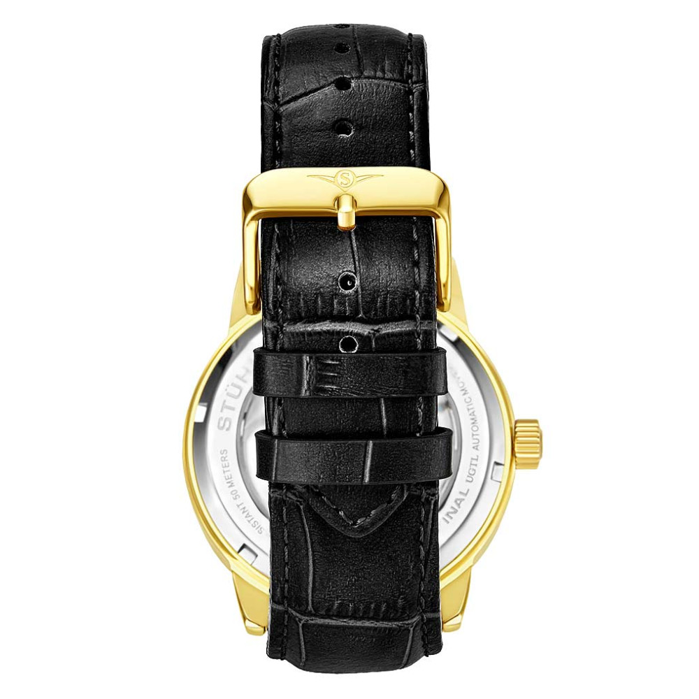 Relógio Masculino Stuhrling Esqueleto 3917 Automático 43mm, Dourado: Tamanho da Caixa 43mm.