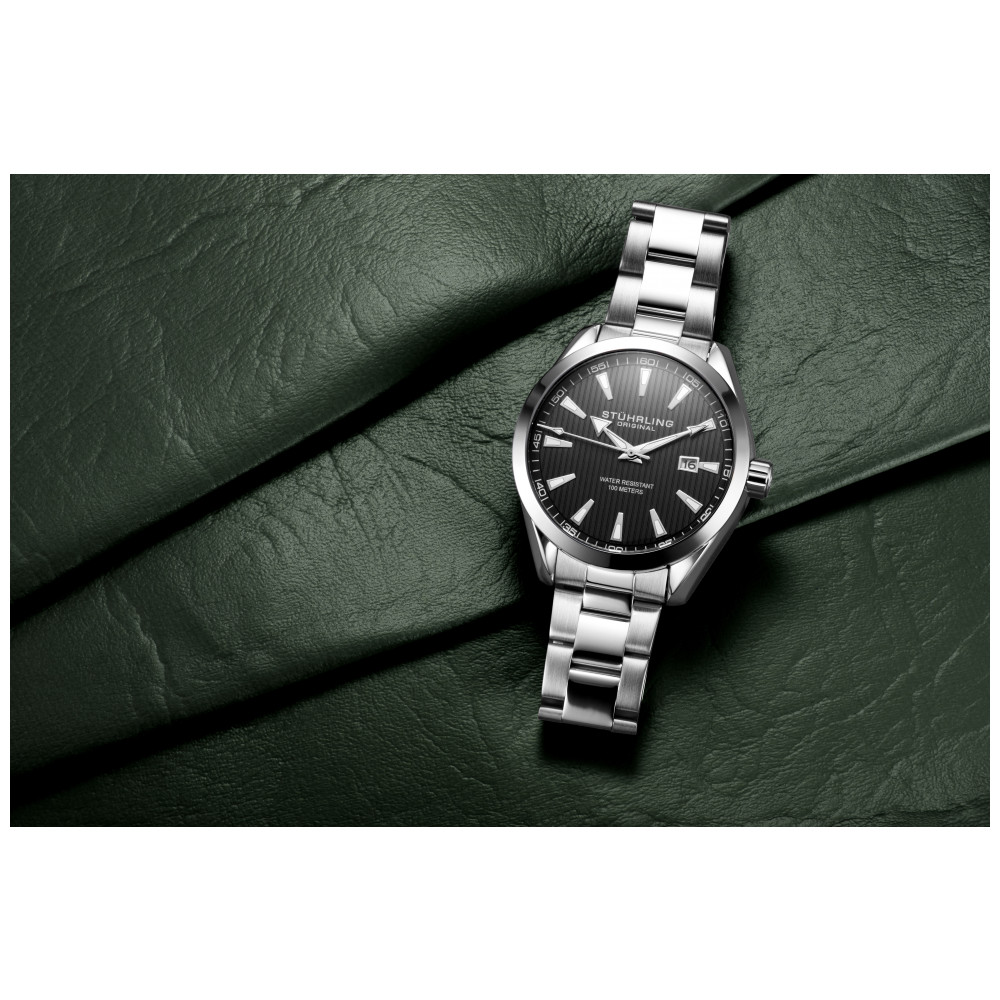 Relógio Masculino Stuhrling Forte 3953 Quartzo 42mm, Prata: Este relógio foi projetado com um fundo de caixa de aço inoxidável de aparafusamento, marcadores de índice aplicados luminosos e mãos de seta luminosas para tornar qualquer roupa mais chamativa.