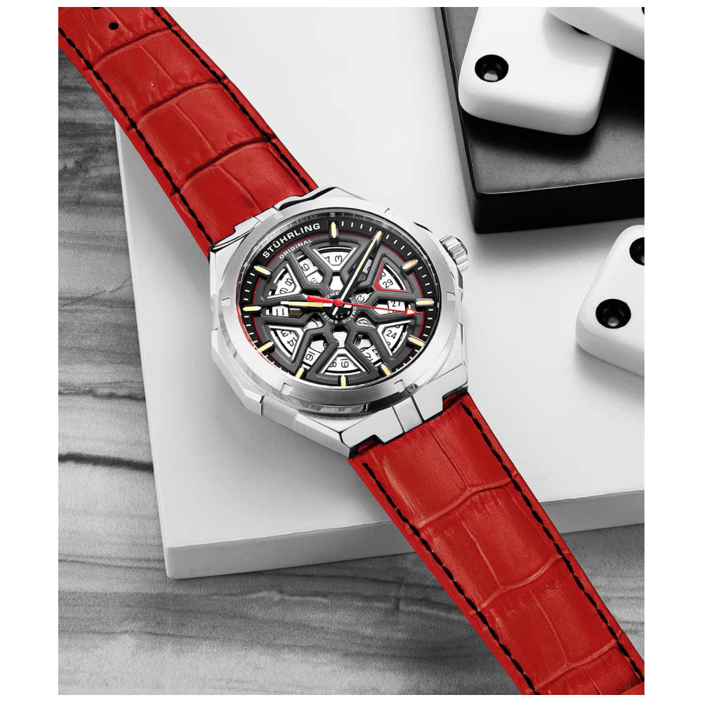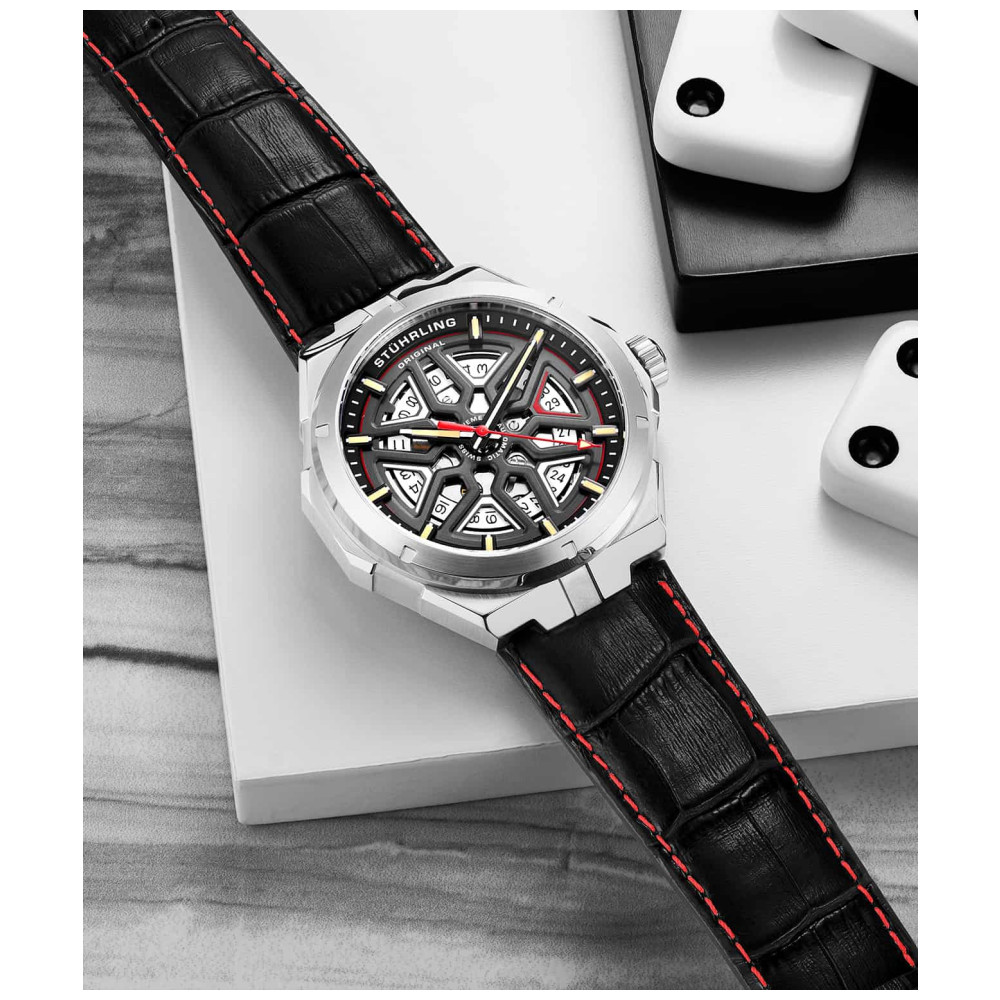 Relógio Masculino Stuhrling Gio 379 Automático 41mm, Preto: Fabricado na Suíça com um toque de estilo e sensibilidade italianos arrojados, Gio é um relógio artesanal feito para se adequar ao seu estilo de vida ativo.