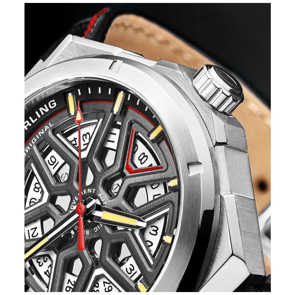 Tamanho da Caixa 41mm Cuide do seu pulso com a hora exata de um relógio Swiss Automatic Movement Fundo de exposição para uma aparência ousada e declarativa Design de discagem exclusivo em 8 estilos exclusivos para se adequar à sua estética Ponteiros e índices luminosos para mantê lo ativo depois do expediente