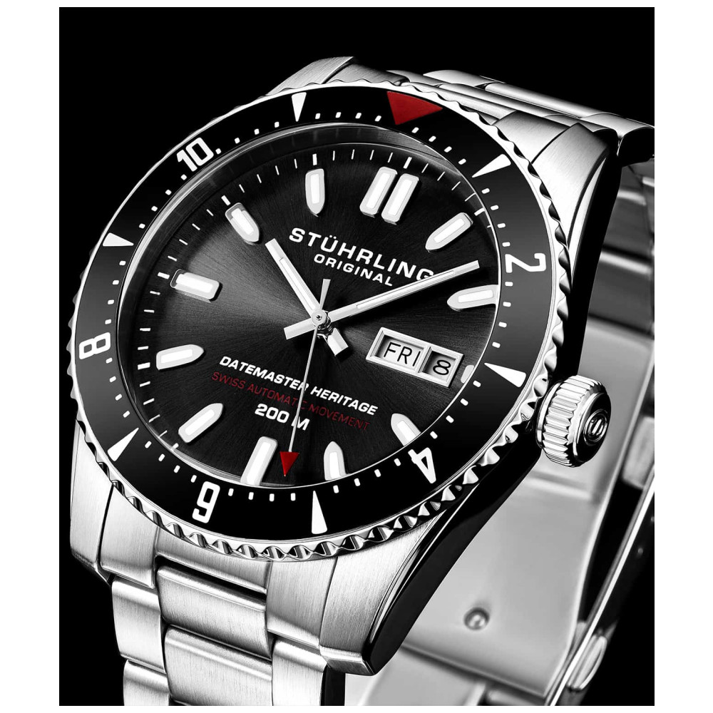 Relógio Masculino Stuhrling Heritage 1004.01 Automático 44mm, Prata: Um perfil elegante e características clássicas de herança com um mostrador rico que se destaca, o Datemaster Heritage 44mm é uma peça atemporal que faz uma declaração suficiente.