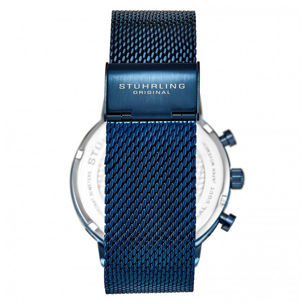 Relógio Masculino Stuhrling Monaco 3932 Quartzo 41mm, Azul: Caixa Quartz Chrono Azul Masculina, Mostrador Azul, Relógio Pulseira de Malha Azul