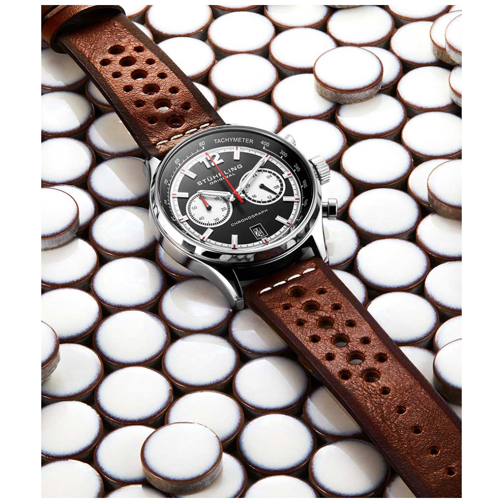 Relógio Masculino Stuhrling Monaco 933 Quartzo 44mm com Cronógrafo, Marrom: Mude para a marcha mais alta com o estilo cronógrafo suave do Monaco 933.