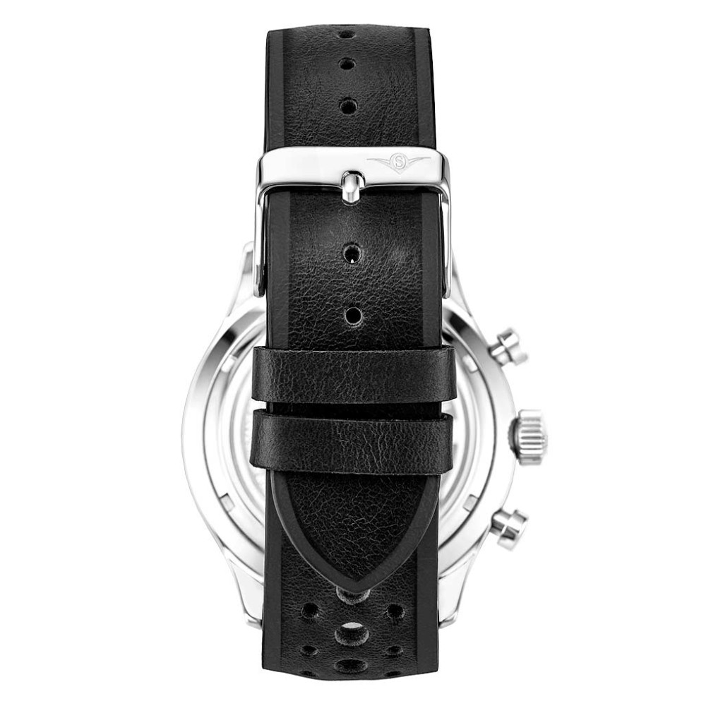 Alimentado por um movimento de quartzo japonês VK64, o segundo rastreador central e o totalizador de minutos às 9 horas mantêm você no ritmo para o topo.