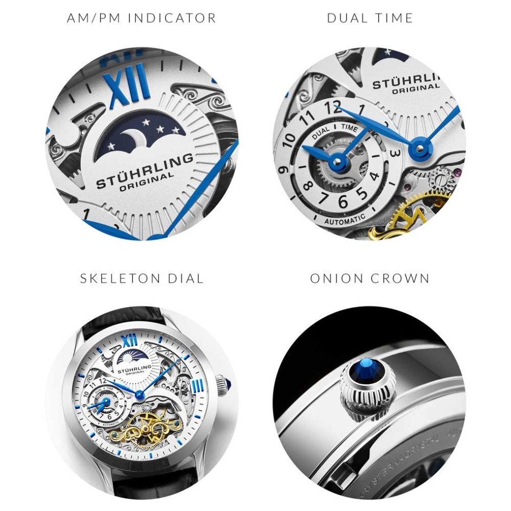 Relógio Masculino Stuhrling Reserve 571 Automático 44mm, Preto: Experimente a precisão mecânica de tempo duplo e o impressionante design esqueletizado com o Special Reserve 571.