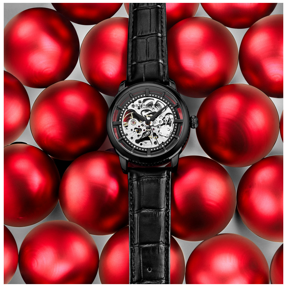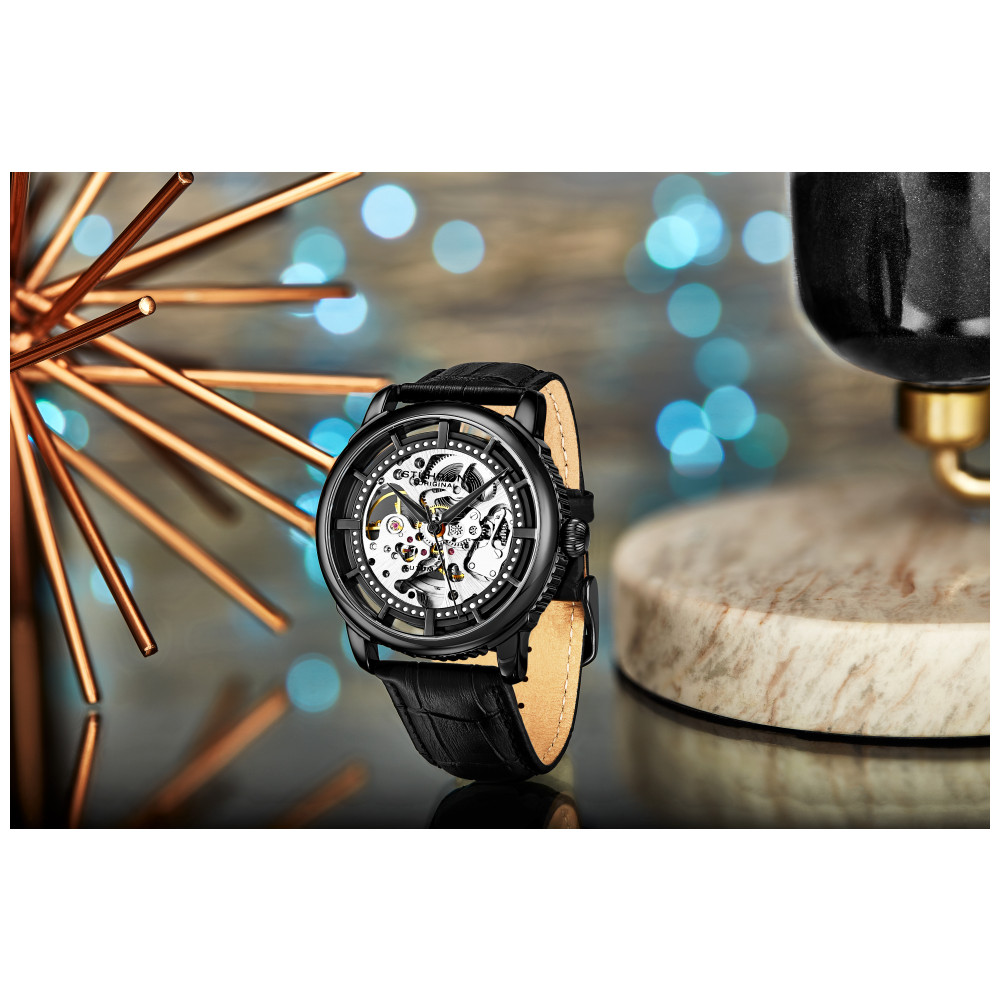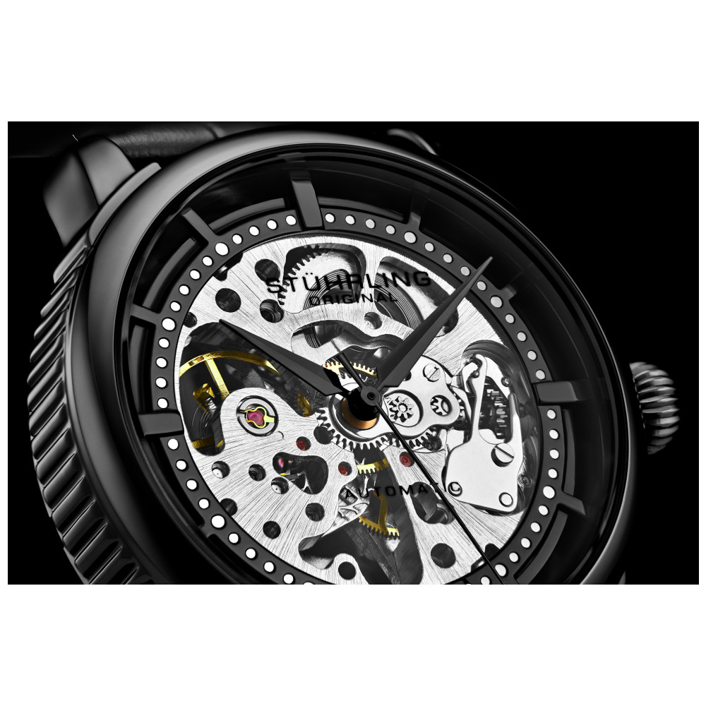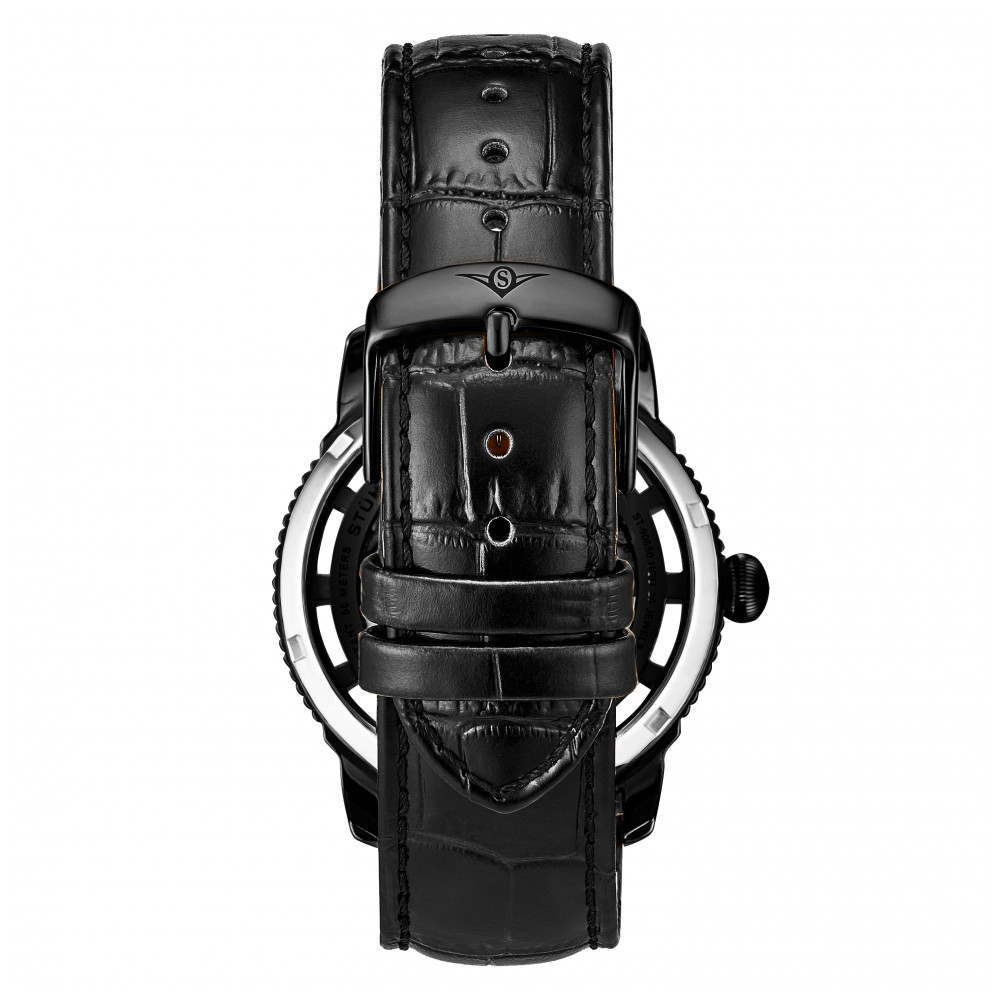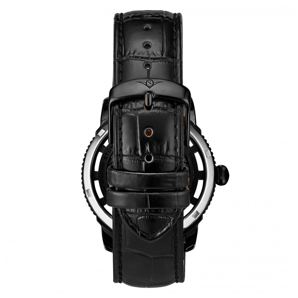 Relógio Masculino Stuhrling Winchester 3933 Automático 41mm, Preto: Tamanho da Caixa 41mm Este relógio automático é feito para dar corda automaticamente o que significa que seu movimento natural dá ao Winchester seu poder de movimento O mostrador esqueletizado adiciona interesse e personalidade ao relógio Completo com um fundo de exibição para uma estrutura clássica que os entusiastas de relógios podem apreciar A pulseira de couro em relevo de crocodilo garante conforto e durabilidade