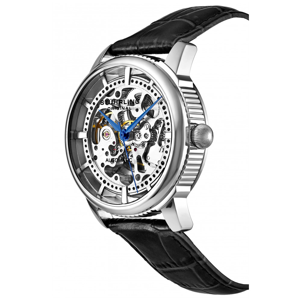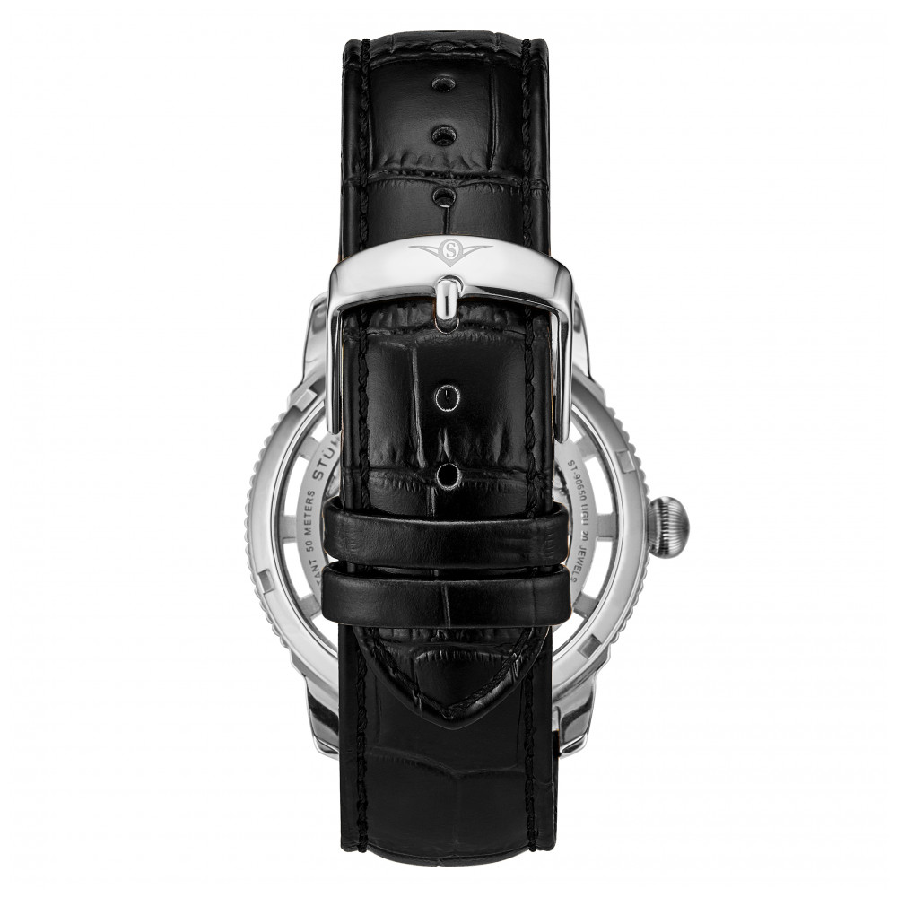 Relógio Masculino Stuhrling Winchester 3933 Automático 41mm, Preto: Tamanho da Caixa 41mm Este relógio automático é feito para dar corda automaticamente o que significa que seu movimento natural dá ao Winchester seu poder de movimento O mostrador esqueletizado adiciona interesse e personalidade ao relógio Completo com um fundo de exibição para uma estrutura clássica que os entusiastas de relógios podem apreciar A pulseira de couro em relevo de crocodilo garante conforto e durabilidade