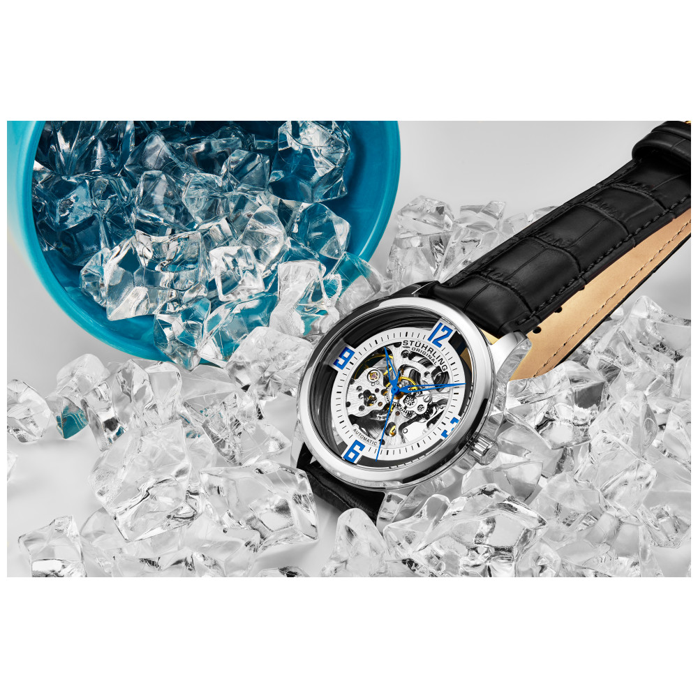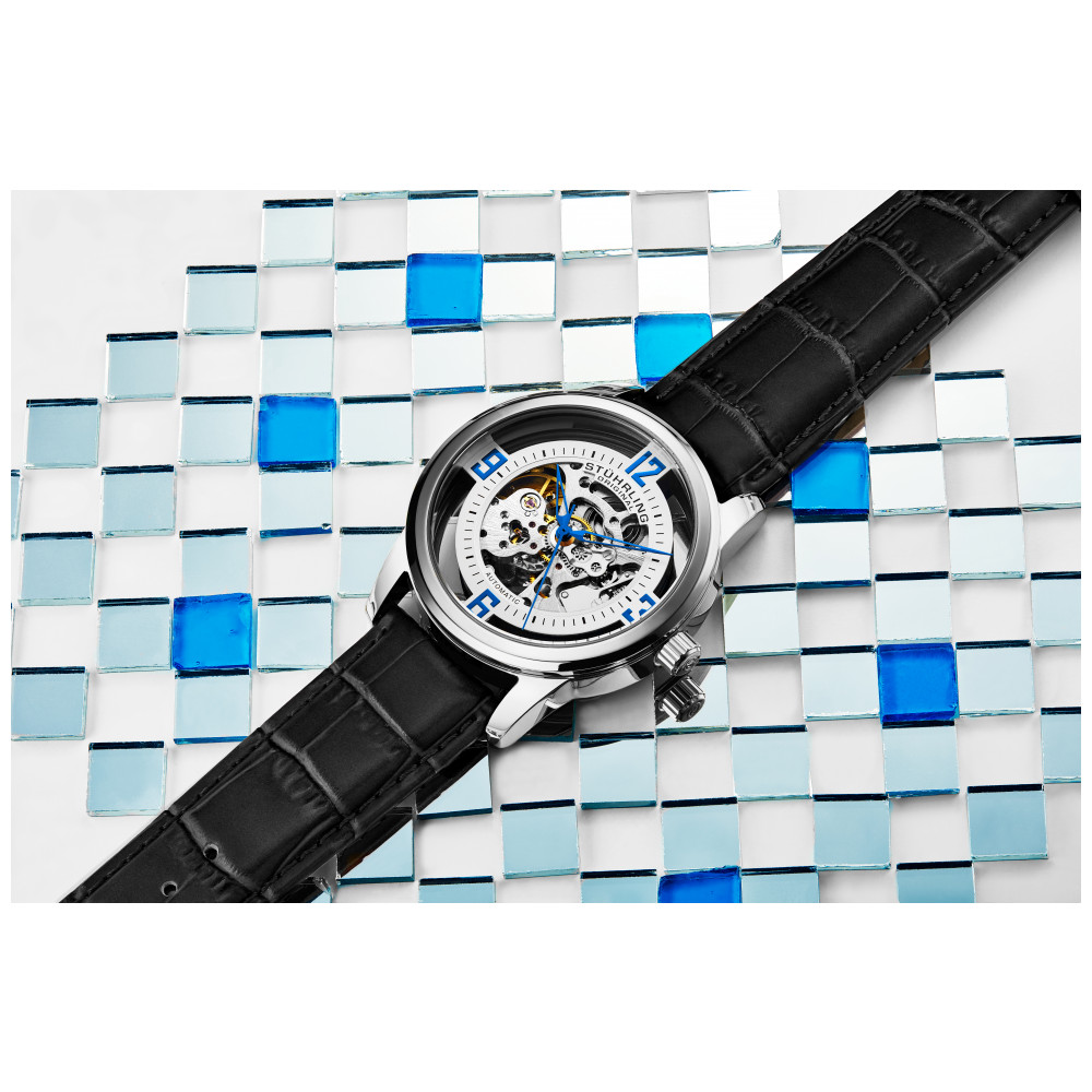 Relógio Masculino Stuhrling Winchester 877 Automático 42mm, Preto: Tamanho da caixa 42mm Resistente à água ATM 50 metros , 165 pés Moldura de chanfro polido Correia genuína com fio de jacaré de largura