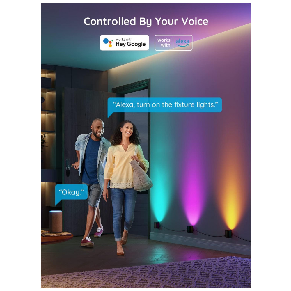Nossas luzes de parede inteligentes também são compatíveis com Alexa e Google Assistant para facilitar o controle.