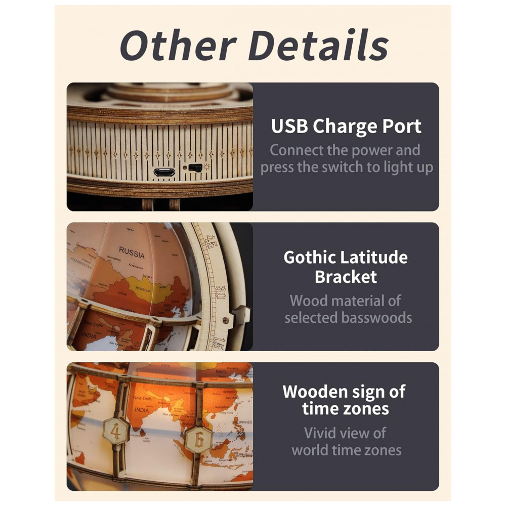 ROKR Quebra Cabeças 3D Globo com Luz Led para Crianças e Adultos, 180 Peças