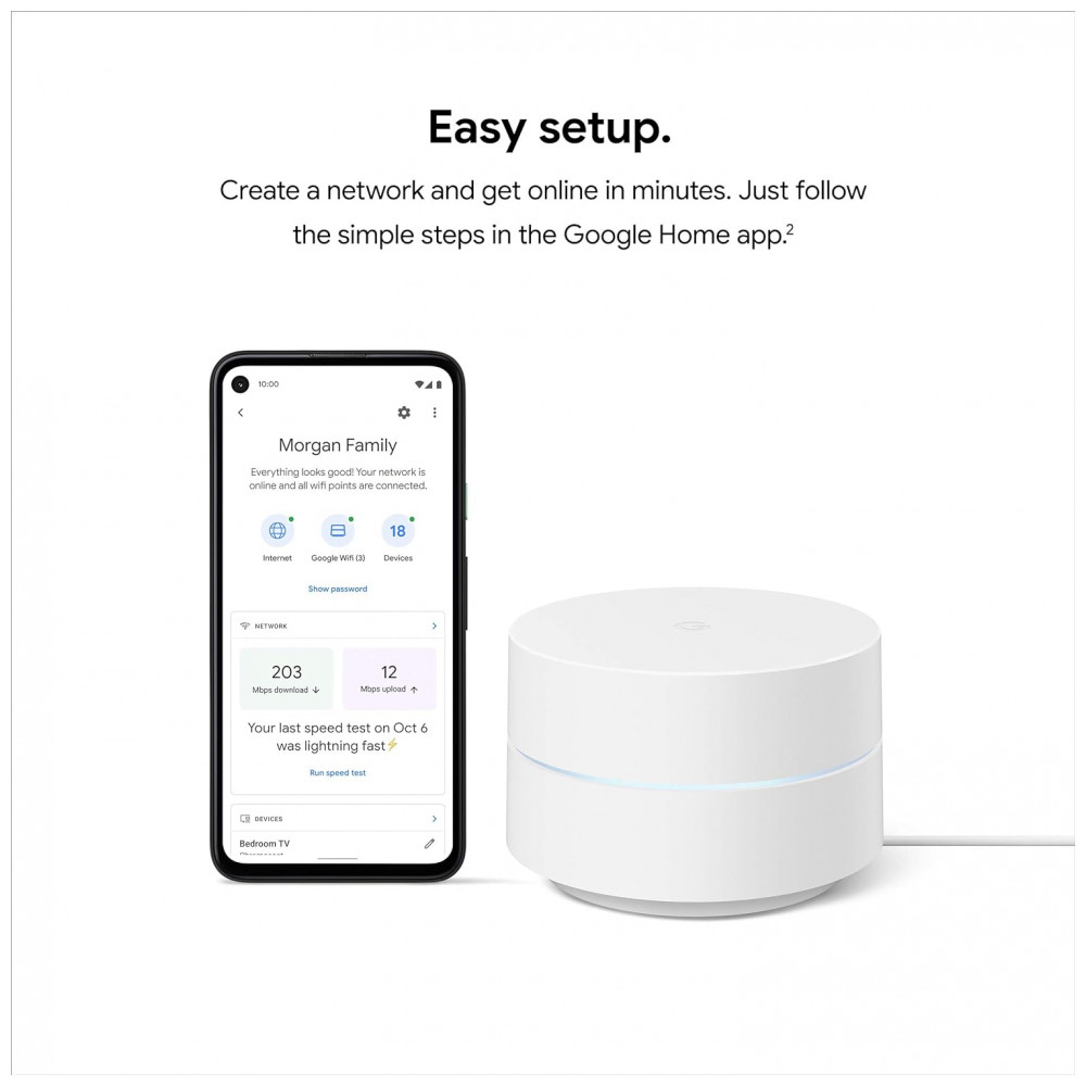 Funcionamento de forma inteligente bastidores para garantir que seu Wifi nos rápido, que você faça com velocidade Configuração simples em algumas etapas use o aplicativo Google Home para criar sua rede e ficar on line em minutos O conteúdo que você gerencie ou tempo de uso, restringindo certos tipos de pausa para adultos ou Wifi em dispositivos específicos e em sua rede mesh sempre que desejar Atualizações de segurança automáticas ajudam sua rede a ficar sã e salva O sistema Wifi doméstico fácil de controlar permite priorizar dispositivos, verificar a velocidade de sua rede, configurar uma rede para convidados e muito mais Funciona com todos os pontos Google Wifi e pode ser adicionado a qualquer sistema Nest Wifi existente basta adicionar mais pontos se precisar de mais cobertura