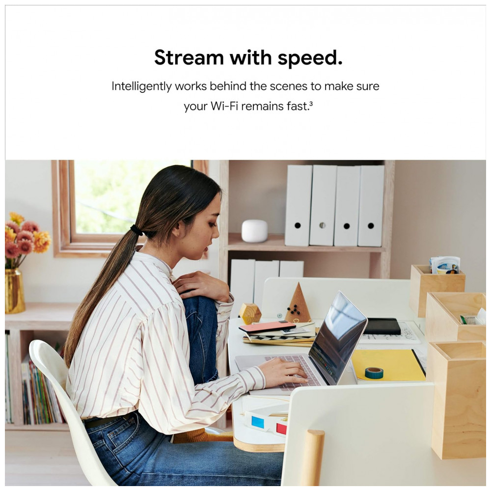 Esses dispositivos Nest Wifi funcionam juntos para Wi Fi rápido a sua casa com uma proteção e proteção o buffering em todos os cômodos 440 pés de quadrados.