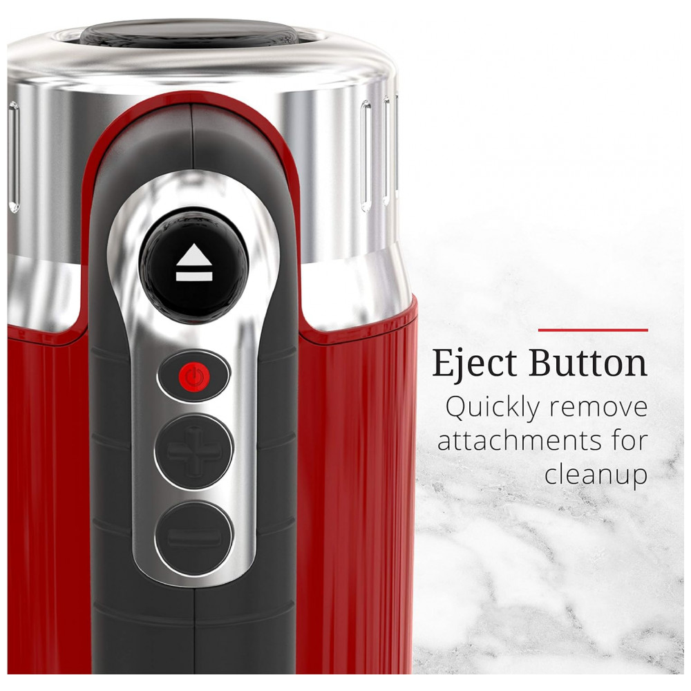 Além disso, o botão de ejeção oferece uma maneira descomplicada de remover os acessórios, e todas as peças removíveis podem ser lavadas na máquina de lavar louça para facilitar a limpeza.
