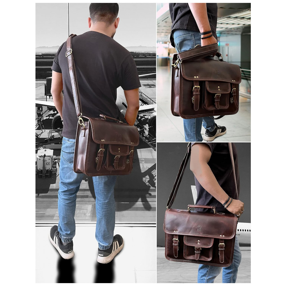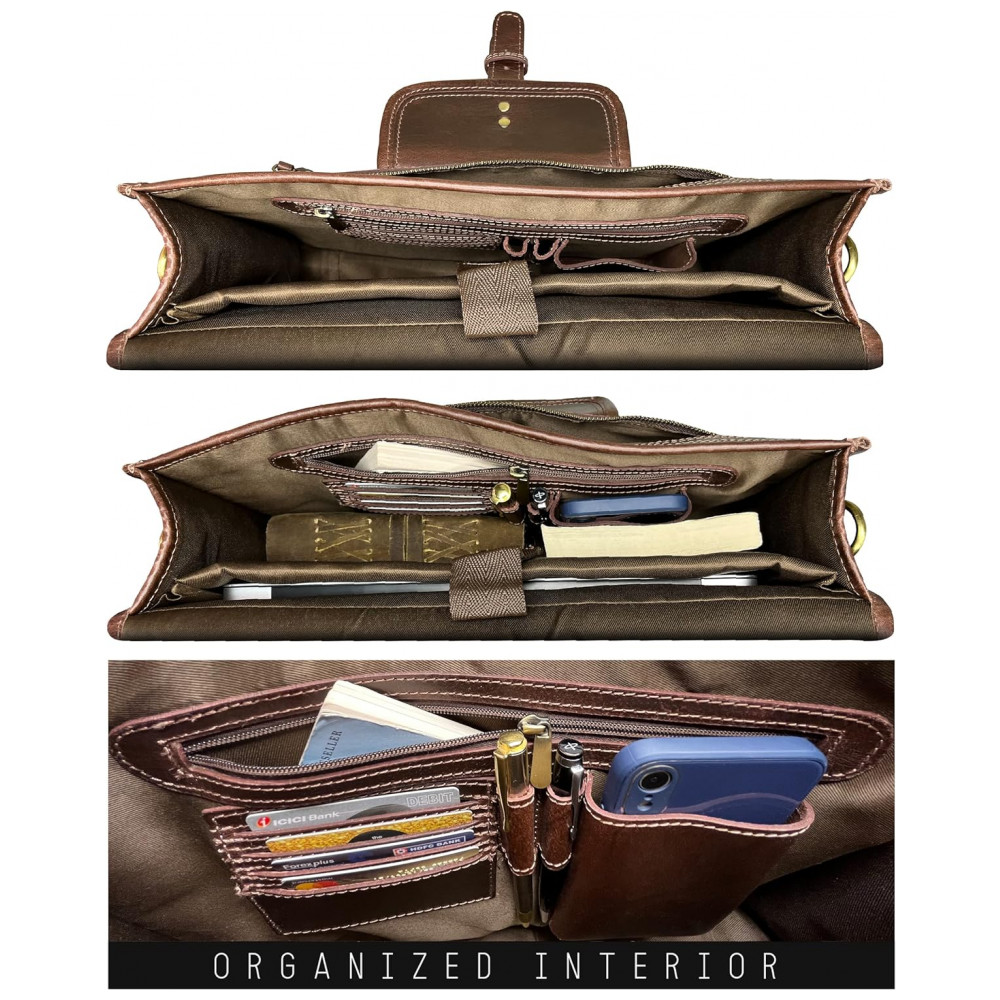 RUSTIC TOWN SHS151104ADN D Bolsa, Pasta de Couro Masculina para Laptop, Marrom: COURO DE BÚFALO ROBUSTO REAL .