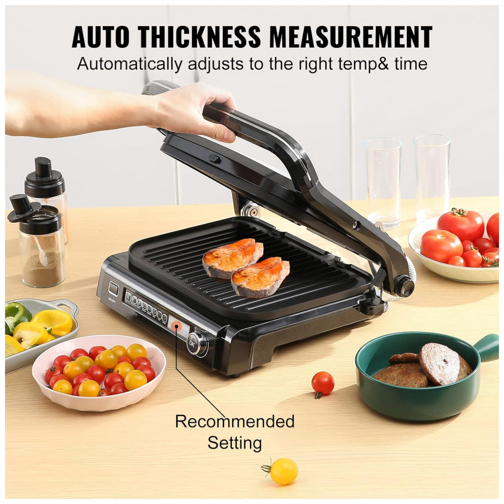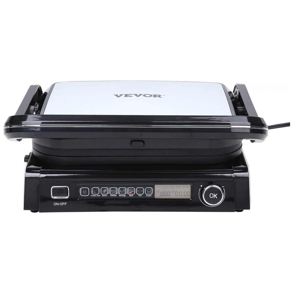 Sanduicheira e Grill Elétrico 7 em 1 de com Superfície Antiaderente e Removível, Controle de Temperatura e Display LCD, 1800W, 110v, VEVOR, Preta