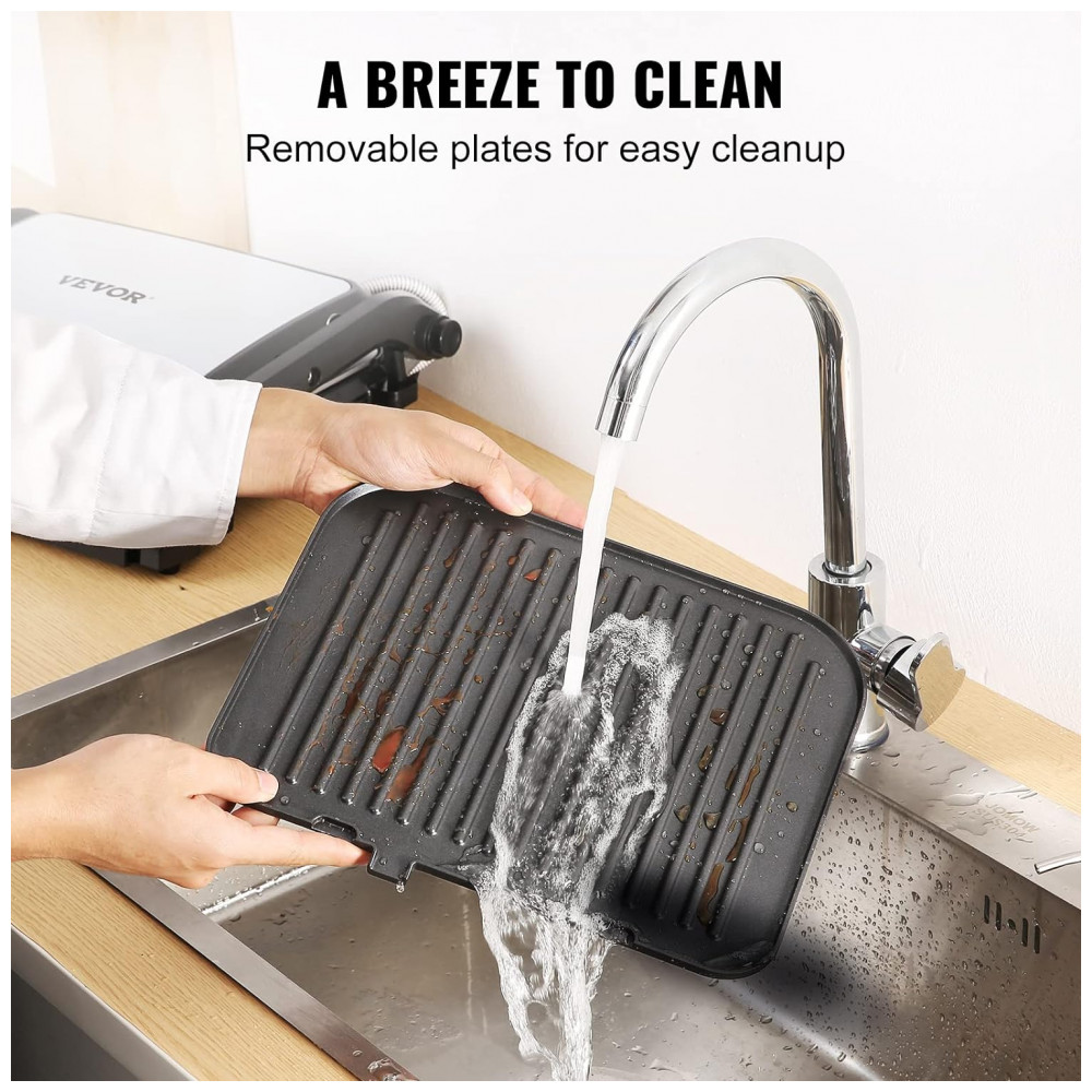 A grelha é fácil de limpar graças às placas removíveis, que podem ser limpas de forma rápida e fácil, mantendo sua cozinha limpa.
