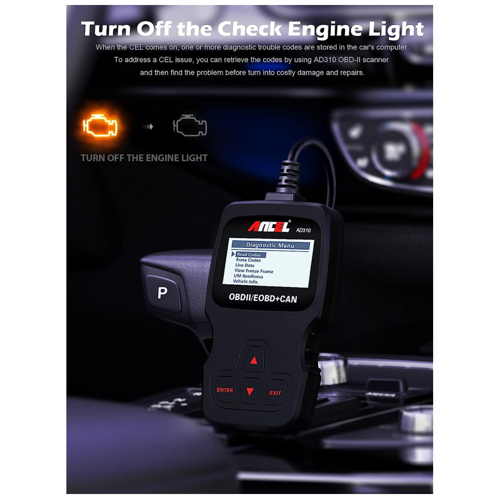 Scanner Automotivo Profissional com Diagnóstico OBD II, 12V, ANCEL AD310, Preto: Design clássico, leitura rápida e eliminação de códigos de problemas, até mesmo um iniciante pode usá lo para ler o código de erro, descobrir qual é o problema e talvez corrigi lo.