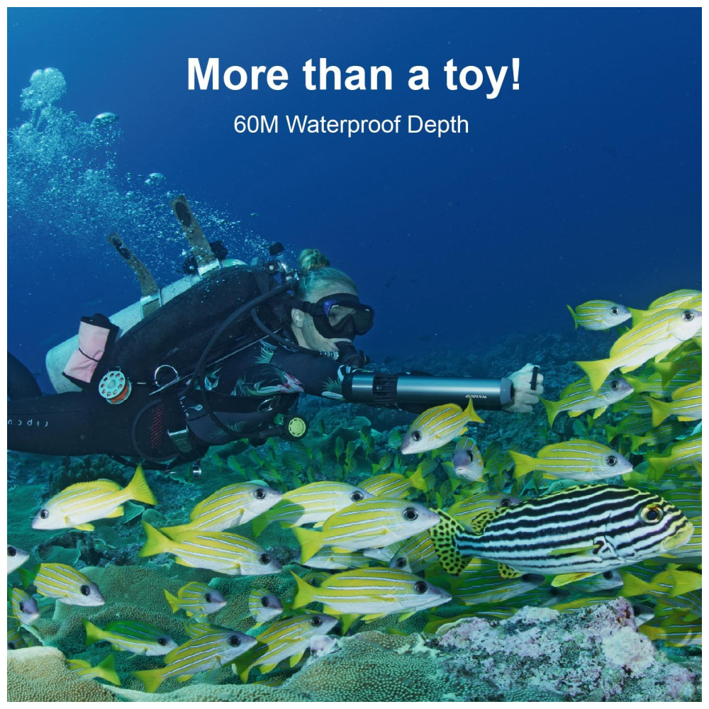 Scooter Subaquática Propulsor de Mergulho com Snorkel para Crianças e Adultos, Waydoo, Cinza: