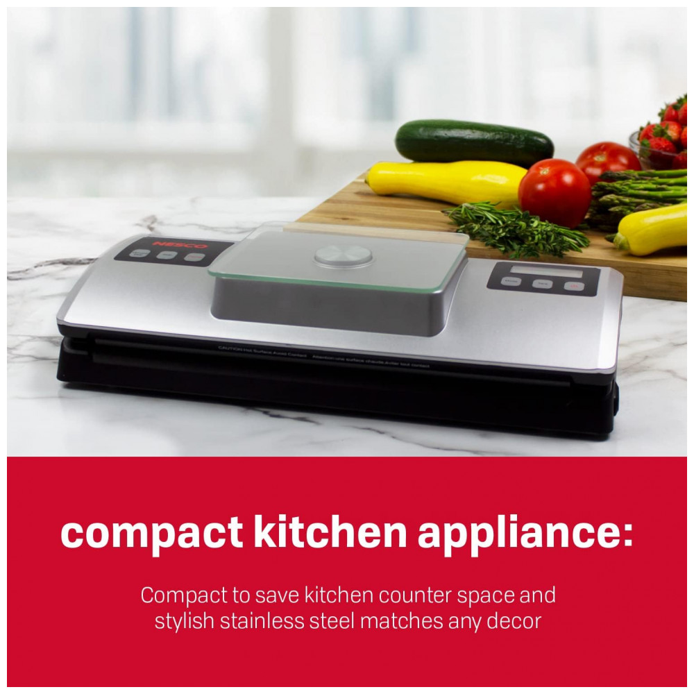Seladora a Vácuo Automática Úmido, Seco com Painel de Controle Digital e Aço Inoxidável, 100W, 110v, NESCO VSS 01, Cinza: MÚLTIPLAS FUNÇÕES A função Seal produz uma vedação hermética e à prova de quebra em um toque, enquanto a função Vacuum Seal simplifica a preservação de qualquer alimento, não importa quão frágil, perfeitamente sempre.