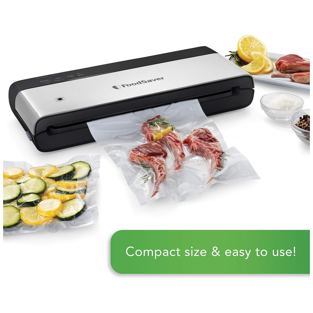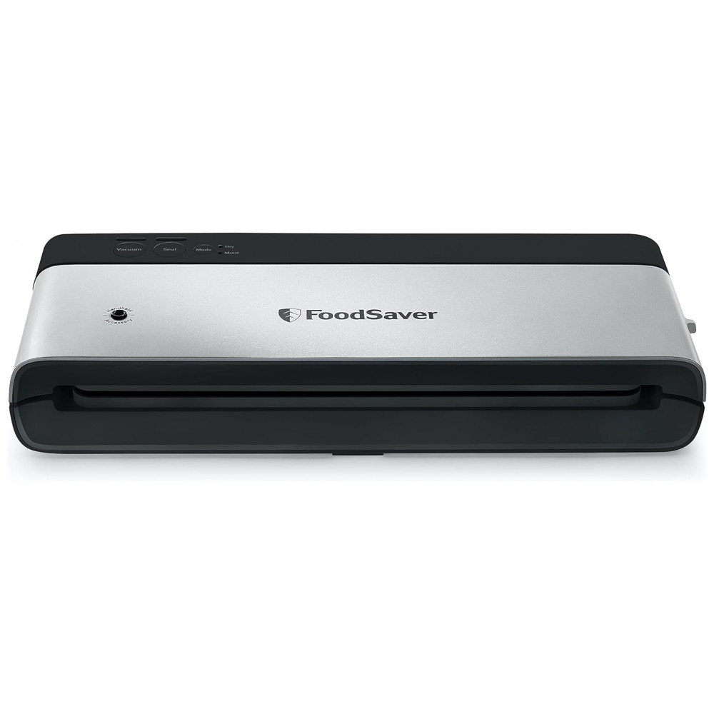 Seco e Úmido, para garantir uma vedação hermética, independentemente do tipo de alimento MAIS CARACTERÍSTICAS A bandeja de gotejamento de alinhamento do saco embutida garante o posicionamento correto do saco todas as vezes e é removível para facilitar a limpeza, conecte se a um selador portátil FoodSaver vendido separadamente para sous vide ou preserve alimentos zenados na geladeira e na despensa, compatível com todos outros sacos, rolos e acessórios FoodSaver